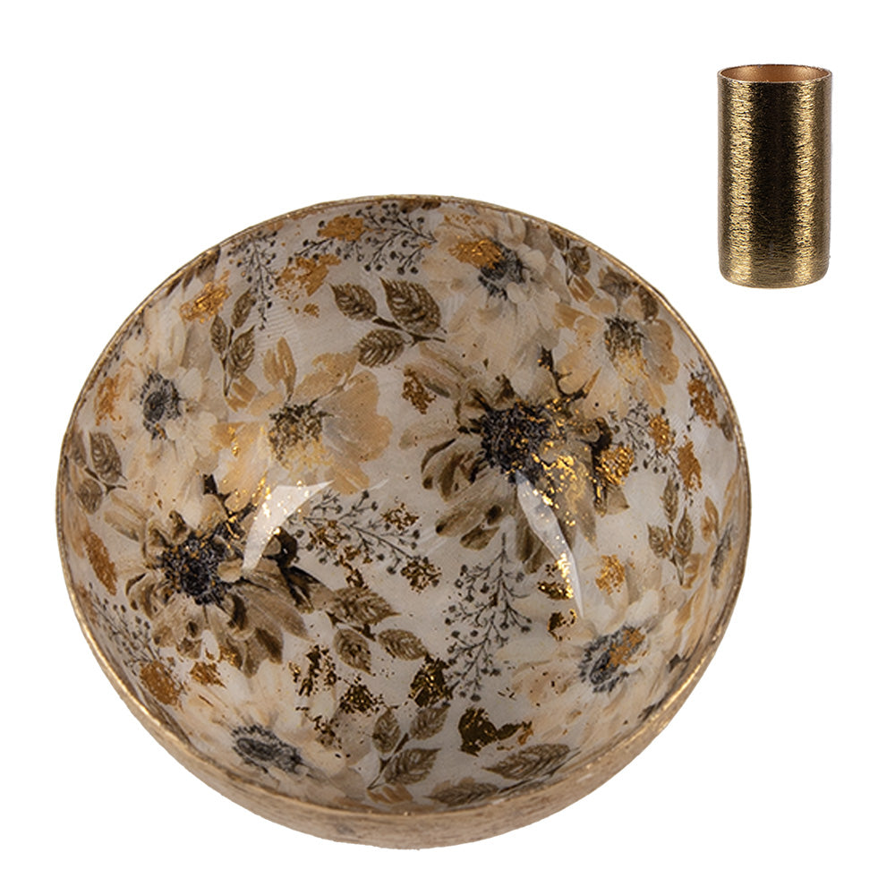Clayre & Eef Kandelaar Ø 8x4 cm Goudkleurig Metaal Bloemen