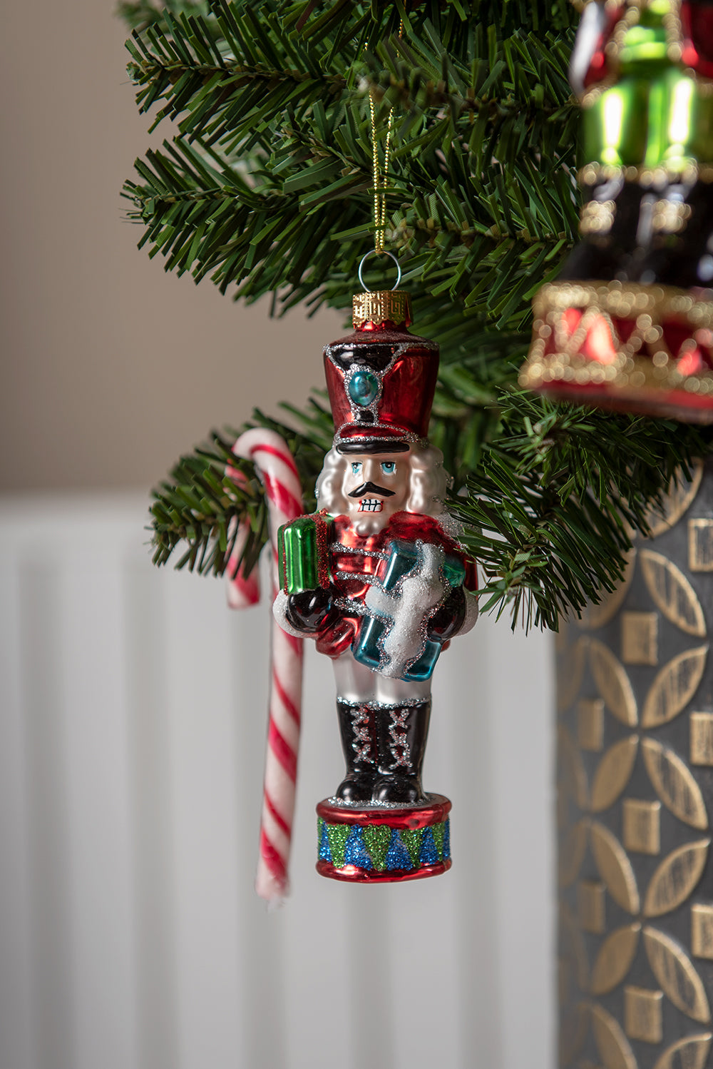 Clayre & Eef Kersthanger Notenkraker 15 cm Rood Groen Glas Kerstbal