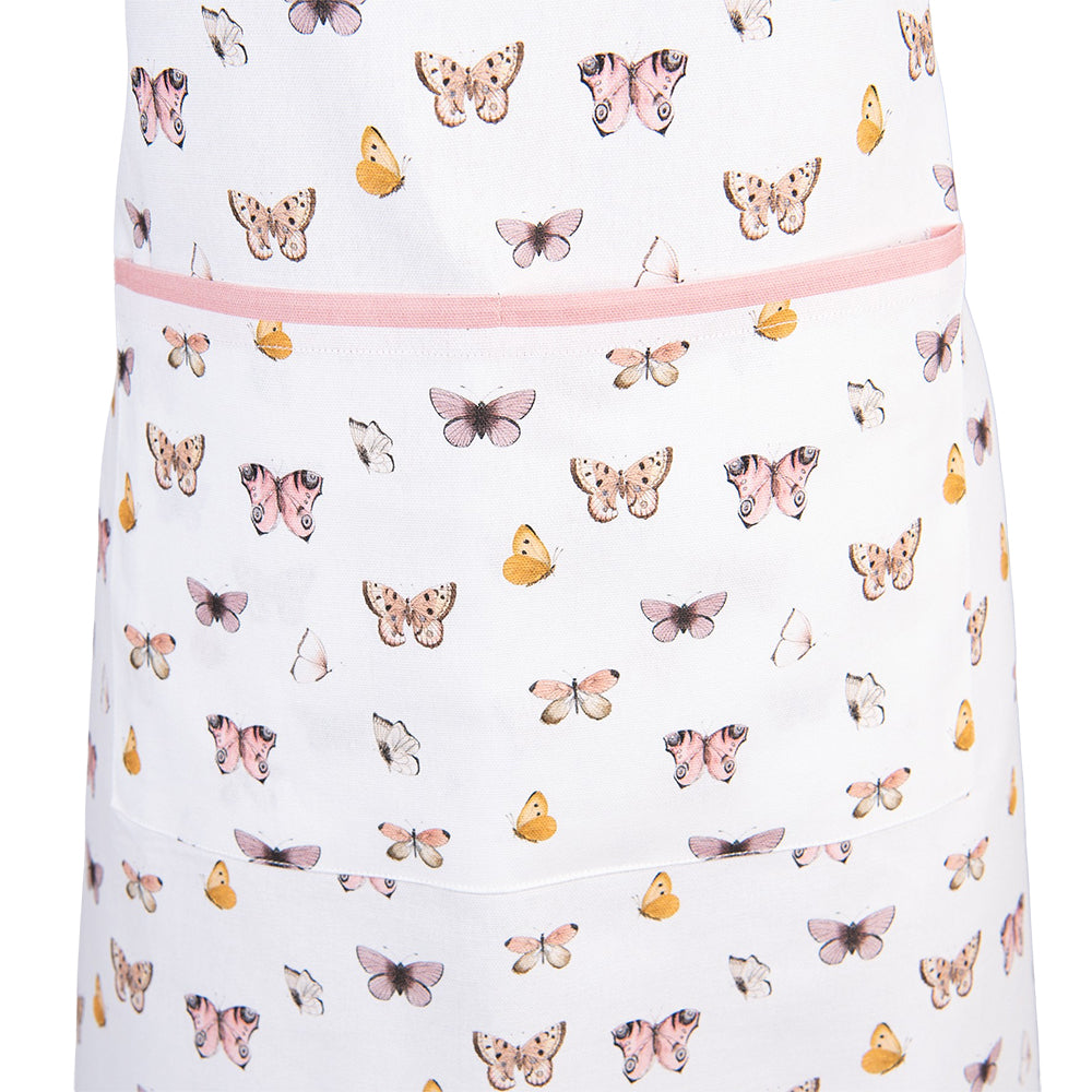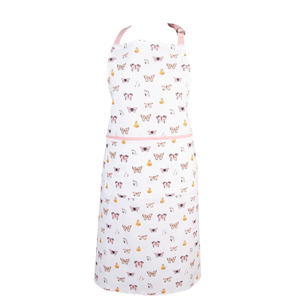 Clayre & Eef Keukenschort 70x85 cm Beige Roze Katoen Vlinders BBQ