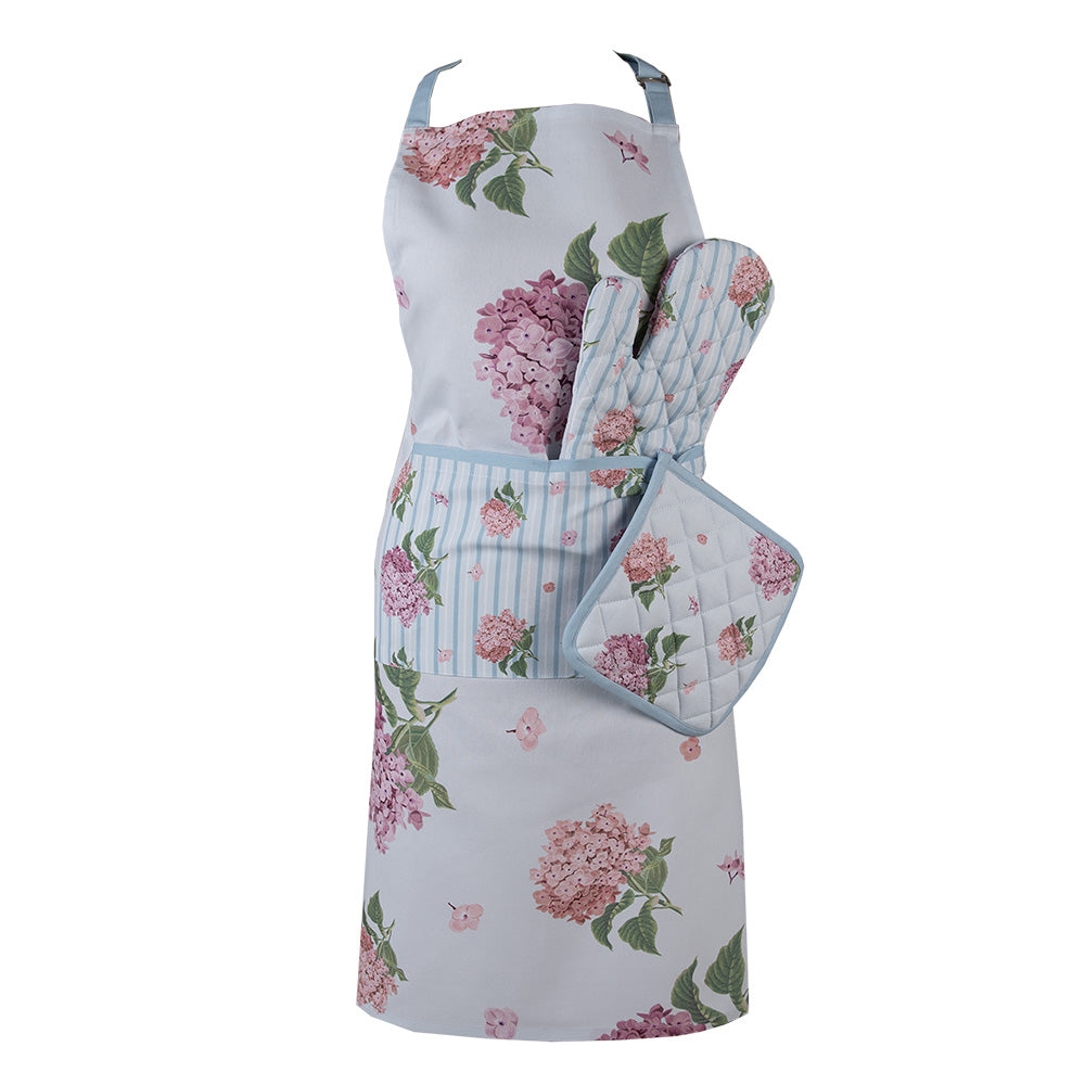 Clayre & Eef Keukenschort 70x85 cm Blauw Roze Katoen Hortensia