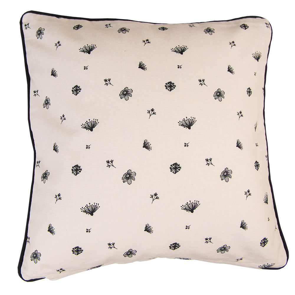 Beige kussenhoes met in het zwart een motief van bloemen en vlinders, van het merk Clayre & Eef.
