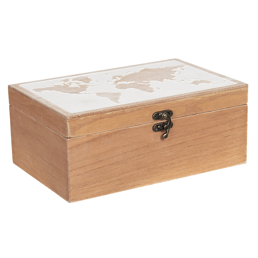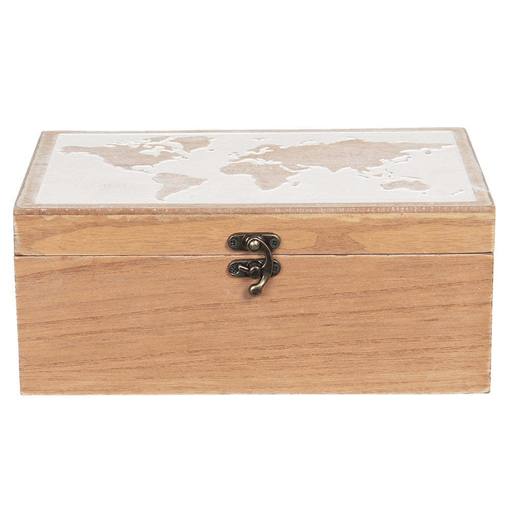 Clayre & Eef Opbergkist 24x16x10 cm Bruin Hout Rechthoek Wereldkaart