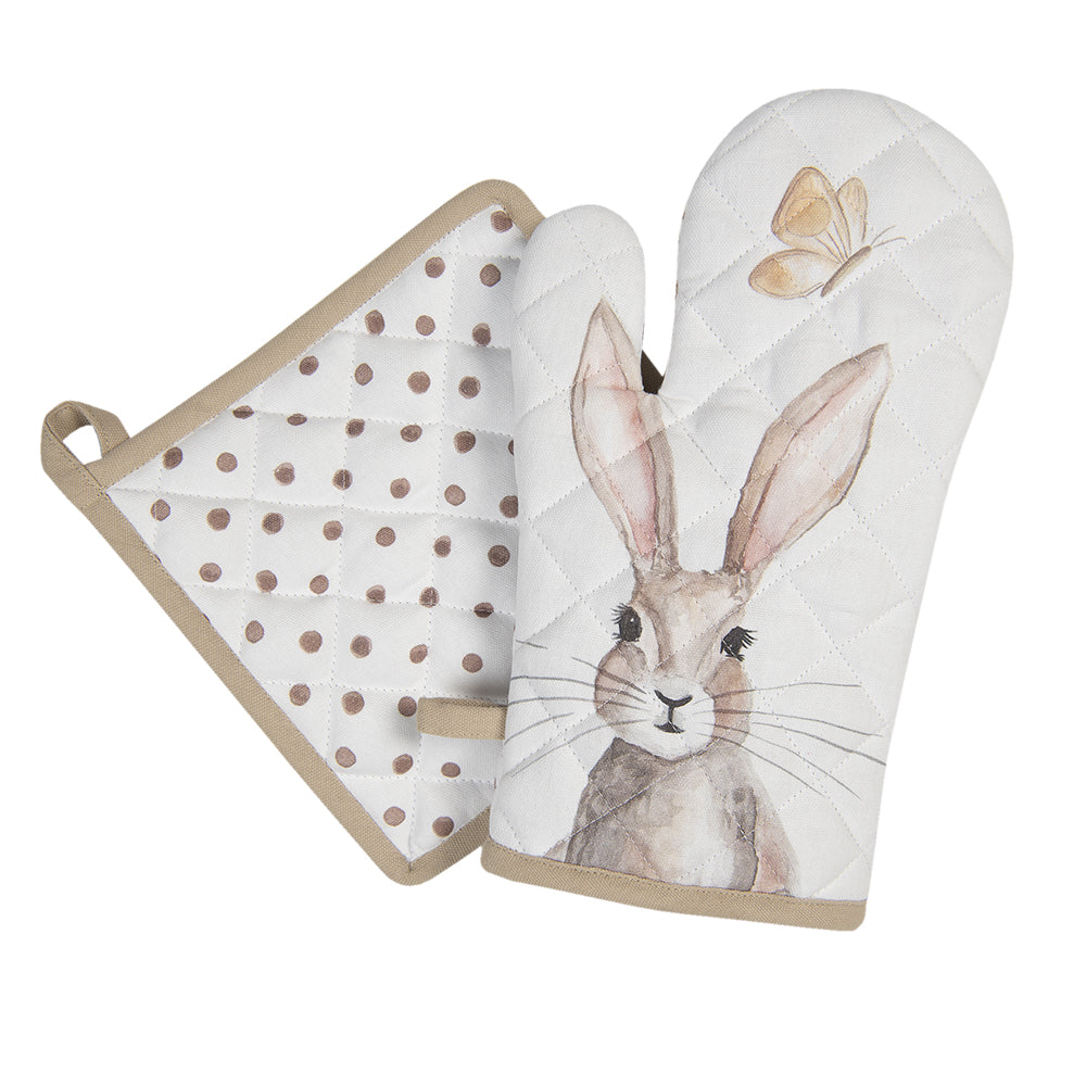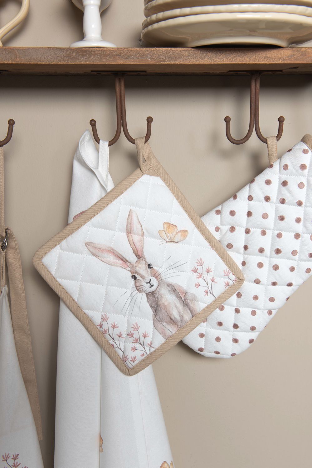 Clayre & Eef Pannenlap 20x20 cm Wit Bruin Katoen Konijn