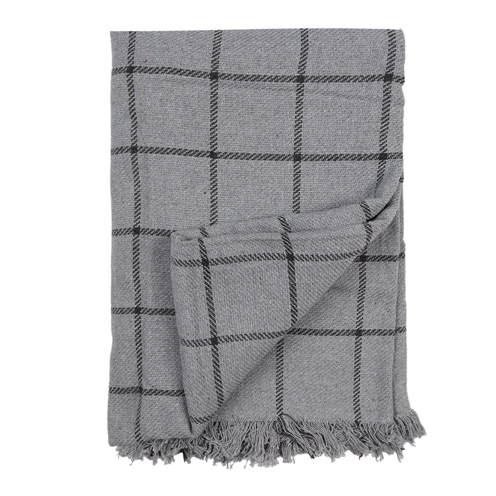 Clayre & Eef Plaid  125x150 cm Grijs Katoen Strepen Deken