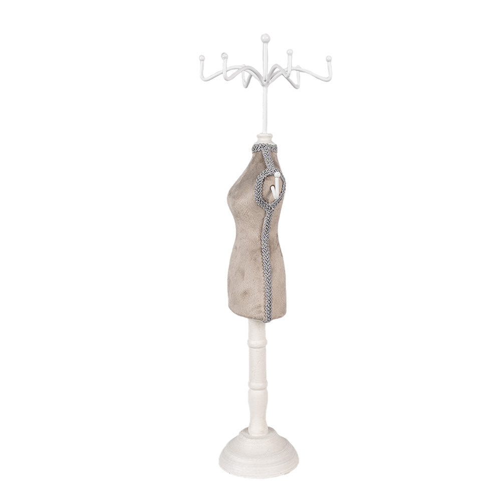 Clayre & Eef Sieraden Standaard 12x12x39 cm Beige Wit Hout IJzer