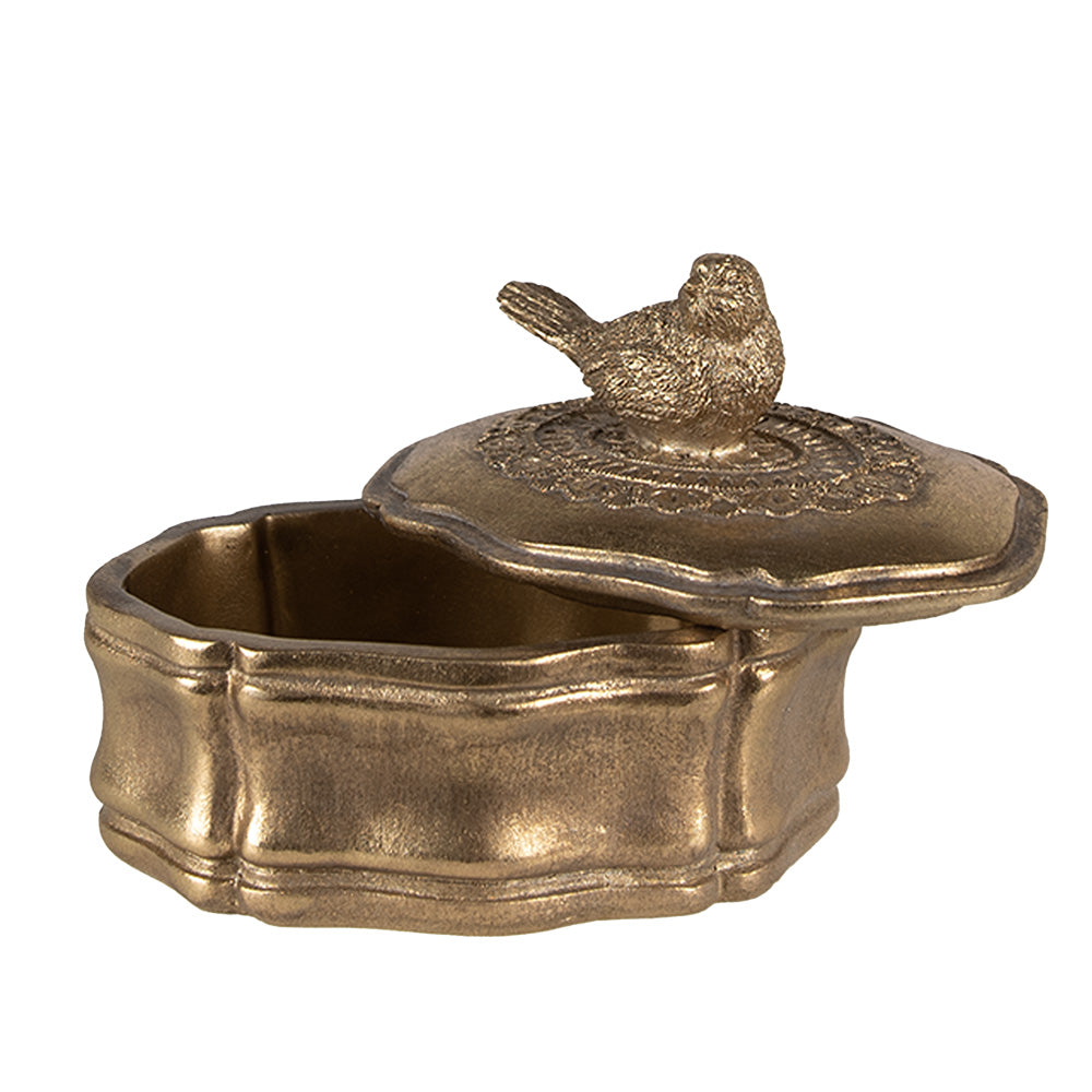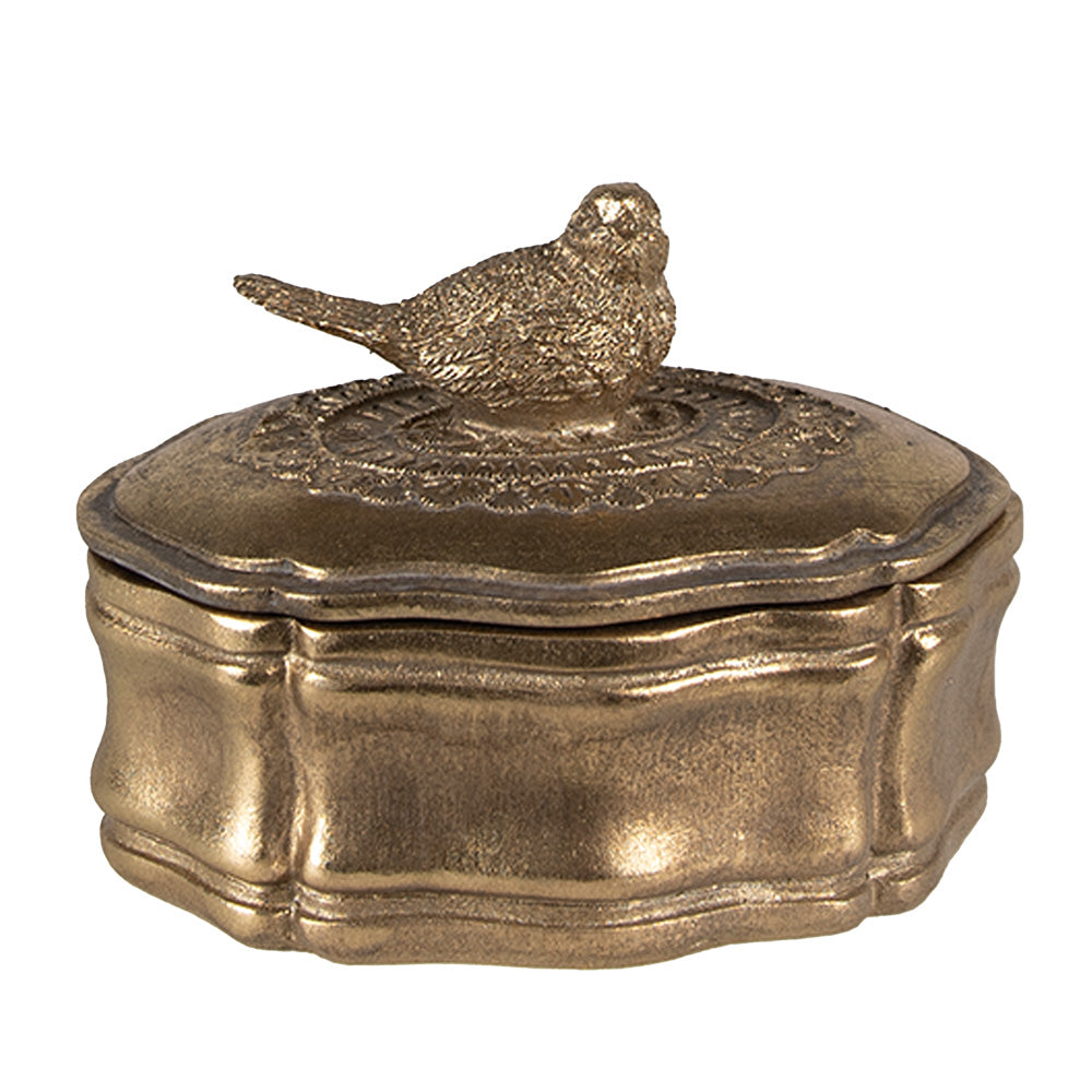 Clayre & Eef Sieradendoos Vogel Ø 9x13 cm Goudkleurig Kunststof