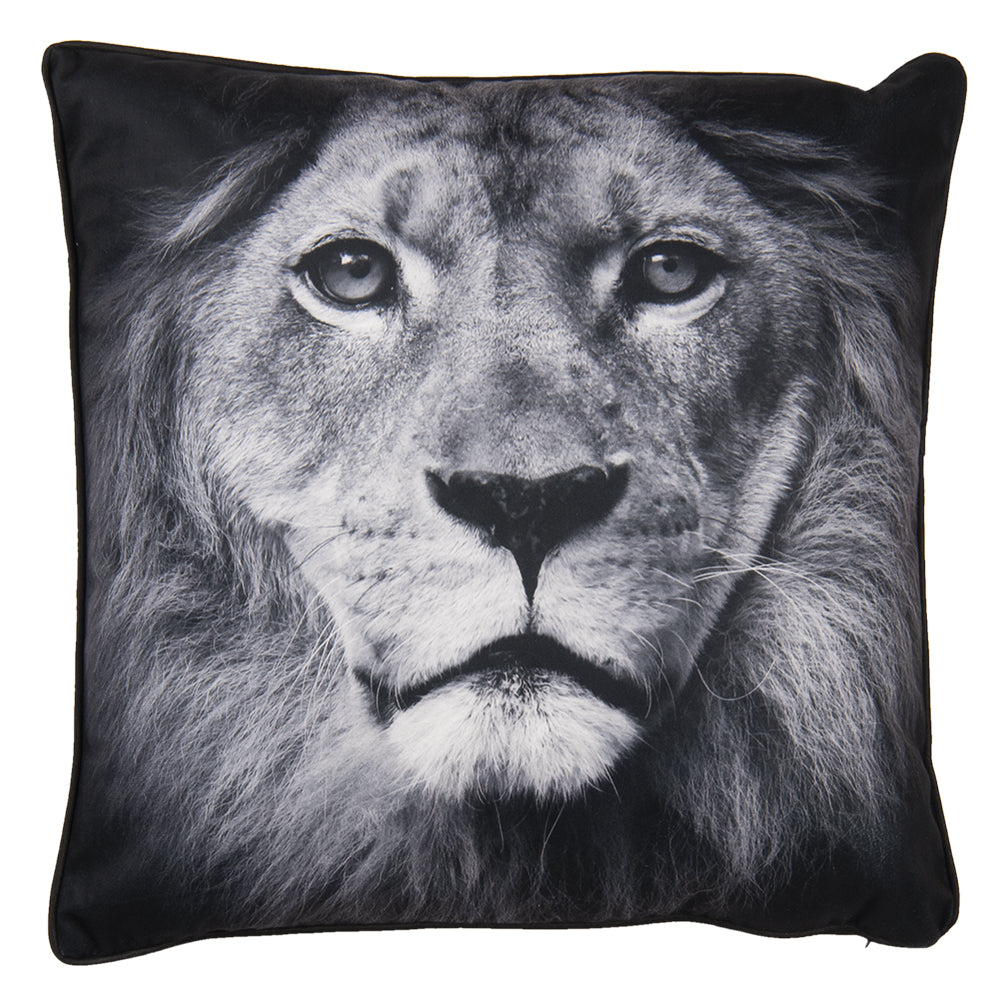 Clayre & Eef Sierkussen 45*45 cm Zwart Wit Synthetisch Vierkant Leeuw