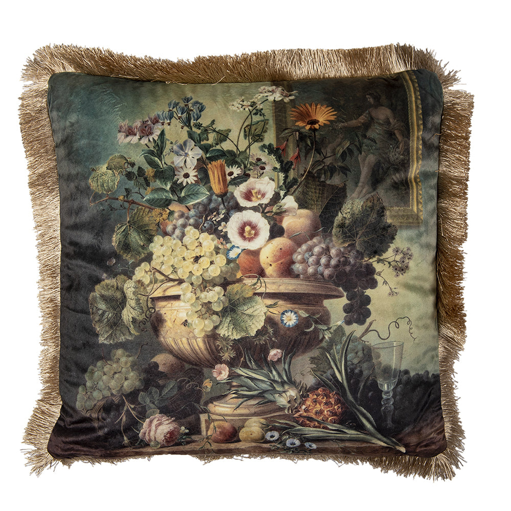 Vierkant groen gebloemd gevuld synthetisch kussen. Clayre & Eef kussenhoezen zijn geschikt om te combineren met andere kussens in diverse kleuren en maten. 45x45 cm.