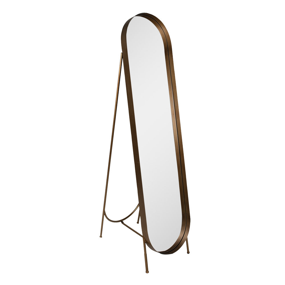 Clayre & Eef Spiegel 41x179 cm Goudkleurig Bruin Ijzer Hout Ovaal