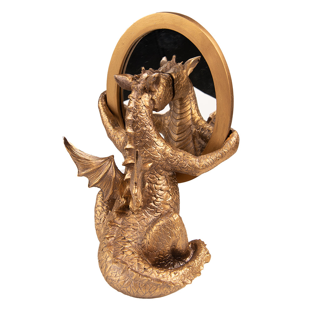 Clayre & Eef Staande Spiegel Draak 16x25 cm Goudkleurig Kunststof