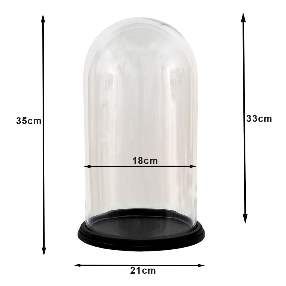 DECORATIEF GLAZEN STOLP: Onze glazen bel is 35 cm in hoogte (inclusief de basis) en heeft een totale basis diameter van 21 cm. De binnen diameter van het glas is 18 cm. De totale hoogte van het glas (exclusief basis) is 33 cm. HOUTEN BASIS: De basis van de stolp is gemaakt van MDF of hout. Het heeft groeven om de glazen pot in te passen, zodat deze niet kan verschuiven of wiebelen. KRISTAL HELDERE GLAZEN STOLP: Omdat Clayre & Eef stolpen kristal helder zijn, ziet u precies wat erin zit. De glazen stolpen met schotel kunnen worden gebruikt voor het tonen van je lievelingsspullen. Dit maakt een prachtig huis of huwelijkskopstuk. Vertoon speciale boeken, ornamenten, kaarsen, rijstlichten, 3d figuren en meer. Deze stolp is een perfect cadeau voor elke gelegenheid. LET OP deze glazen zijn ambachtelijk geproduceerd. Hierdoor kan het voorkomen dat er een luchtbelletje of een streepje in het glas zit.