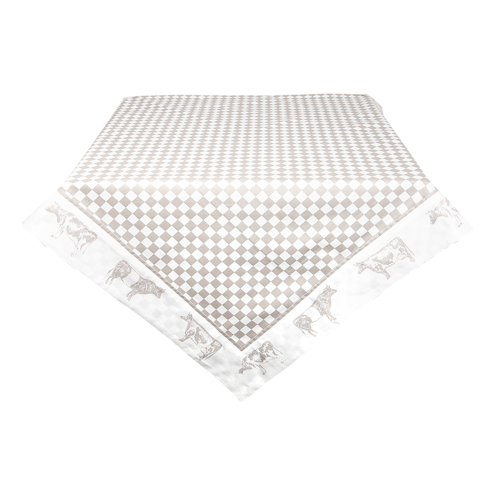 Clayre & Eef Tafelkleed 100x100 cm Beige Wit Katoen Vierkant Koeien