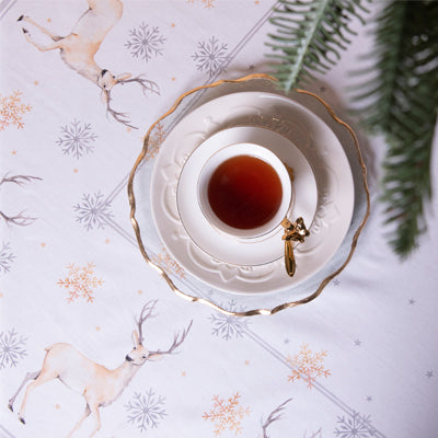 Dit vrolijke Tafelkleed van het merk Clayre & Eef met kerst/hert motief op een witte achtergrond is mooi en praktisch tegelijk. De grijs/beige print in een landelijke stijl met een klassieke uitstraling geeft een gezellige en leuke sfeer aan je tafel. Voor het dagelijkse gebruik bij het ontbijt, middag- en avondeten ligt het tafelkleed mooi op tafel en is geschikt voor iedere gelegenheid. De afmeting van het tafelkleed is 100x100 cm. Onze tafelkleden zijn van 100% katoen en kunnen gewassen worden in de wasmachine. Het tafelkleed komt uit de keukentextielserie Pastel Christmas . In deze prachtige serie vind je ook bijpassende artikelen zoals ovenhandschoenen, tafelkleden, tafellaken, tafellopers, kussens, placemats, servetten, schorten, maar ook thee-en keukendoeken, pannenlappen en broodmanden. Met home-textiel van Clayre & Eef wordt jouw thuis nog gezelliger.