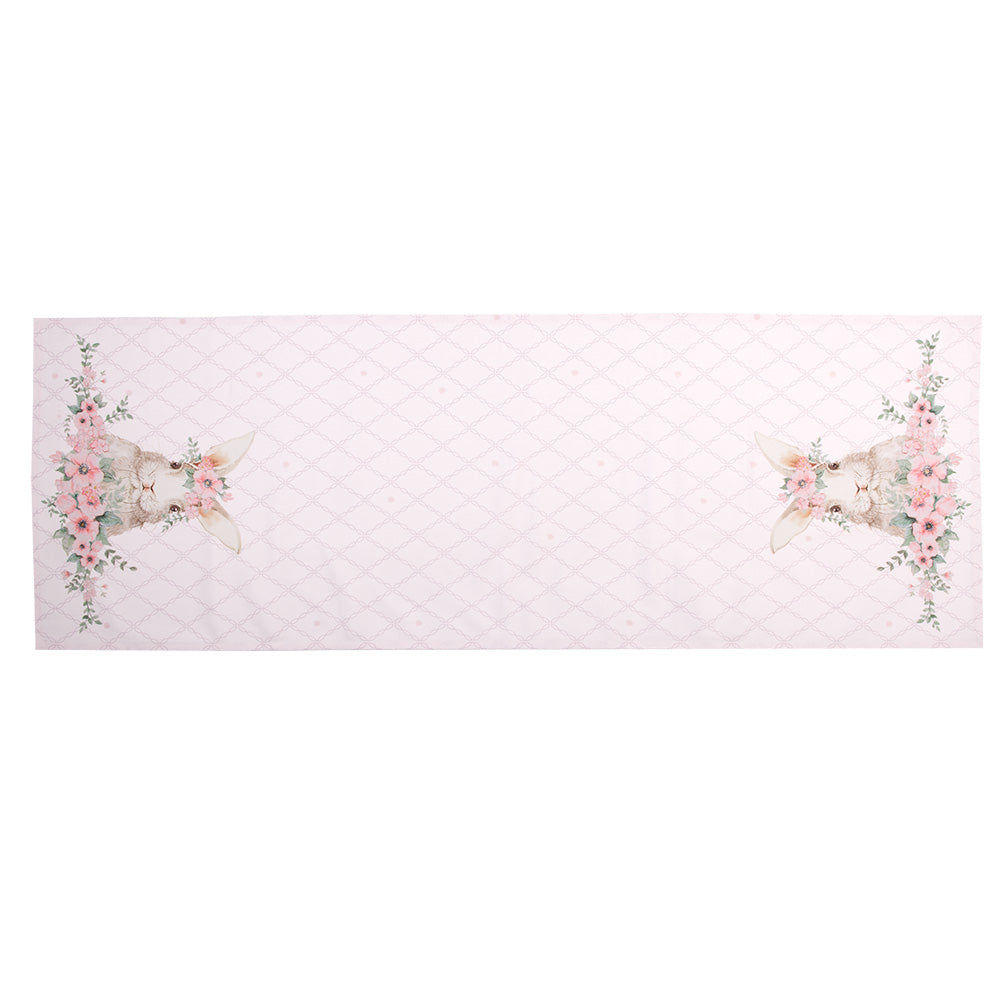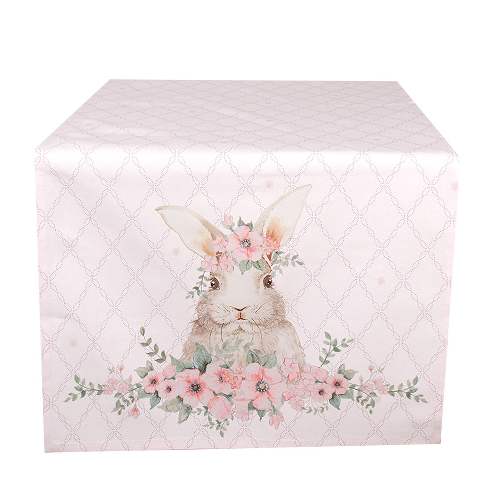 Clayre & Eef Tafelloper 50x140 cm Roze Katoen Konijn Tafelkleed