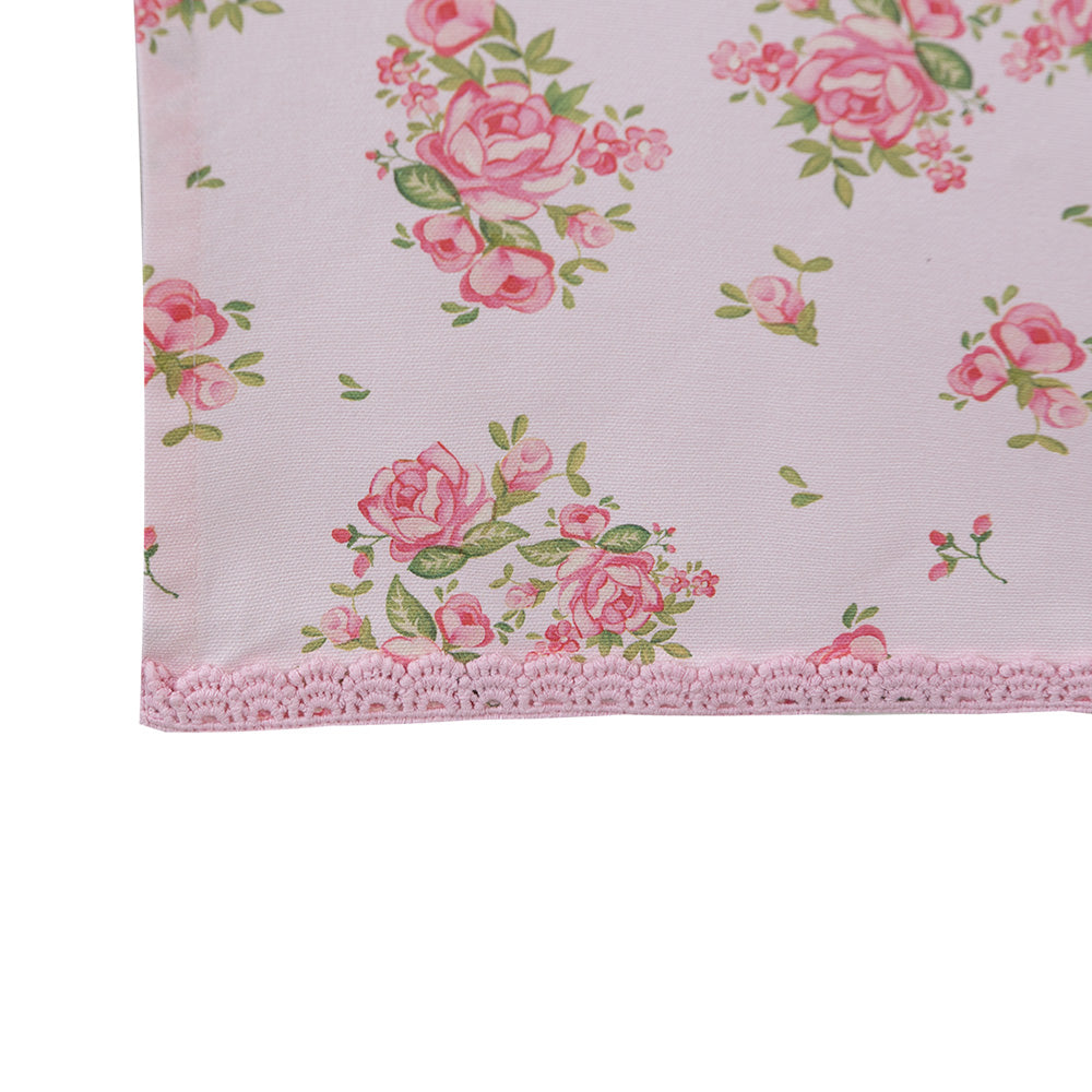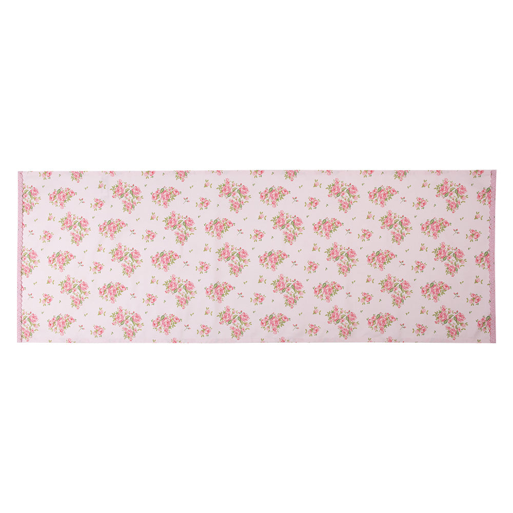 Deze serie is zoeter dan zoet! De zachtroze ondergrond, gecombineerd met het rozenpatroon vormt de vrolijke mierzoete basis van deze serie. De combinaties met het stip- en streeppatroon maakt dit textiel tevens allesbehalve saai. Het kanten detail op items als het tafelkleed, kussen, keukenschort, tafellopers en keukendoeken, maakt deze serie helemaal af. Met dit keukentextiel is geen etentje meer saai. Kies voor zoet! Tafelloper