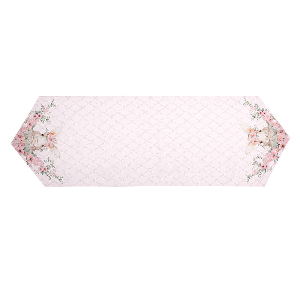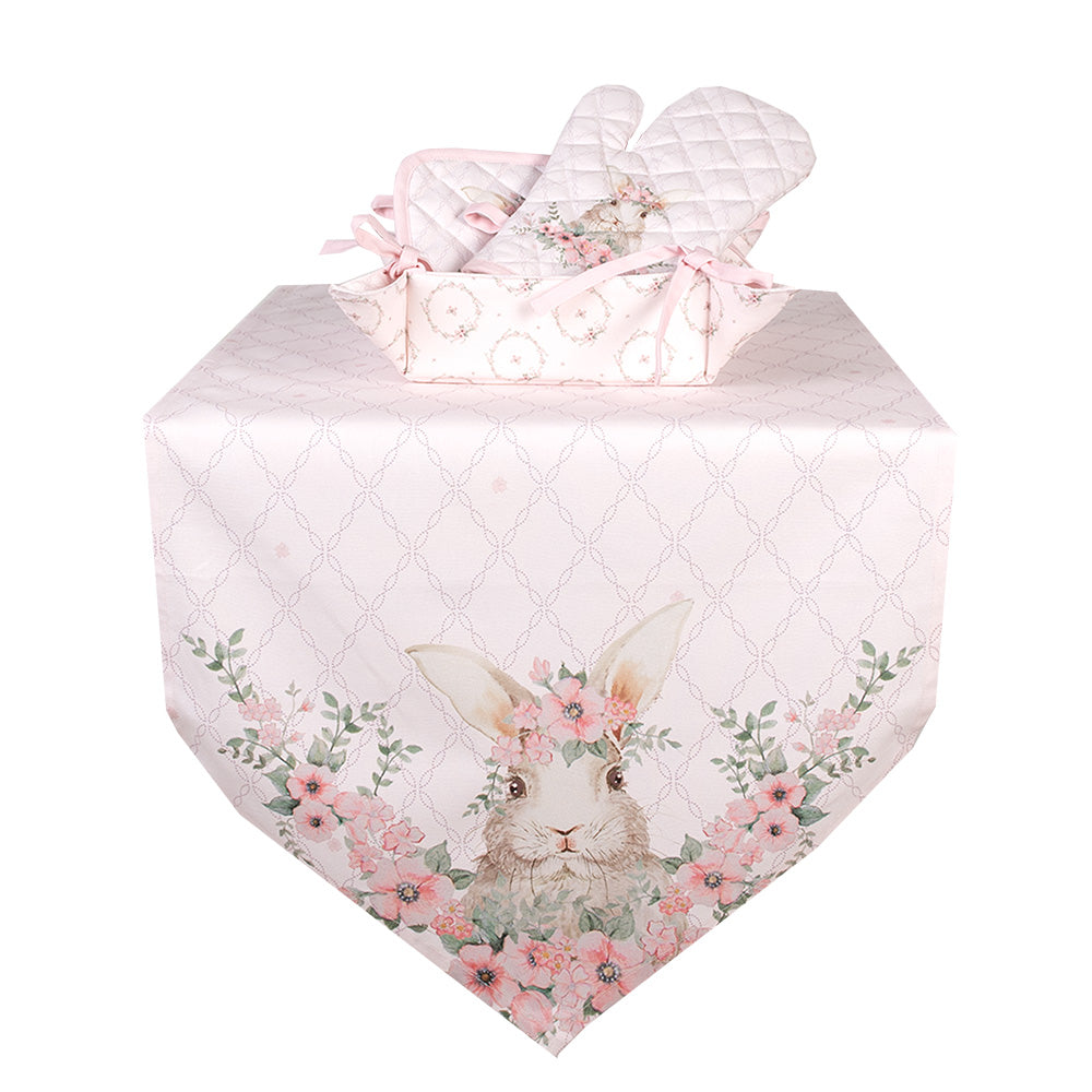 Clayre & Eef Tafelloper 50x160 cm Roze Katoen Konijn Tafelkleed