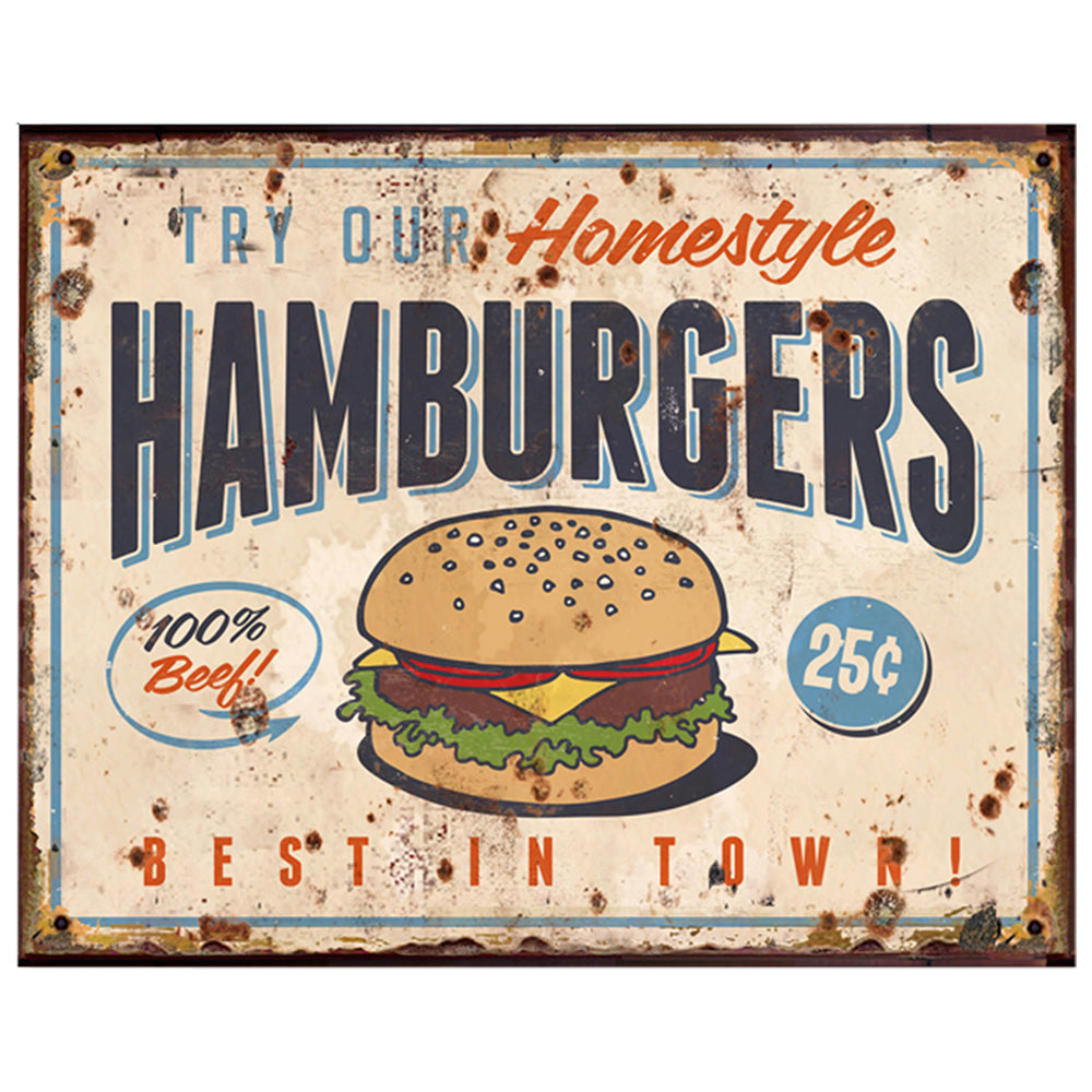 Clayre & Eef Tekstbord 25x20 cm Beige Ijzer Hamburger Food Wandbord