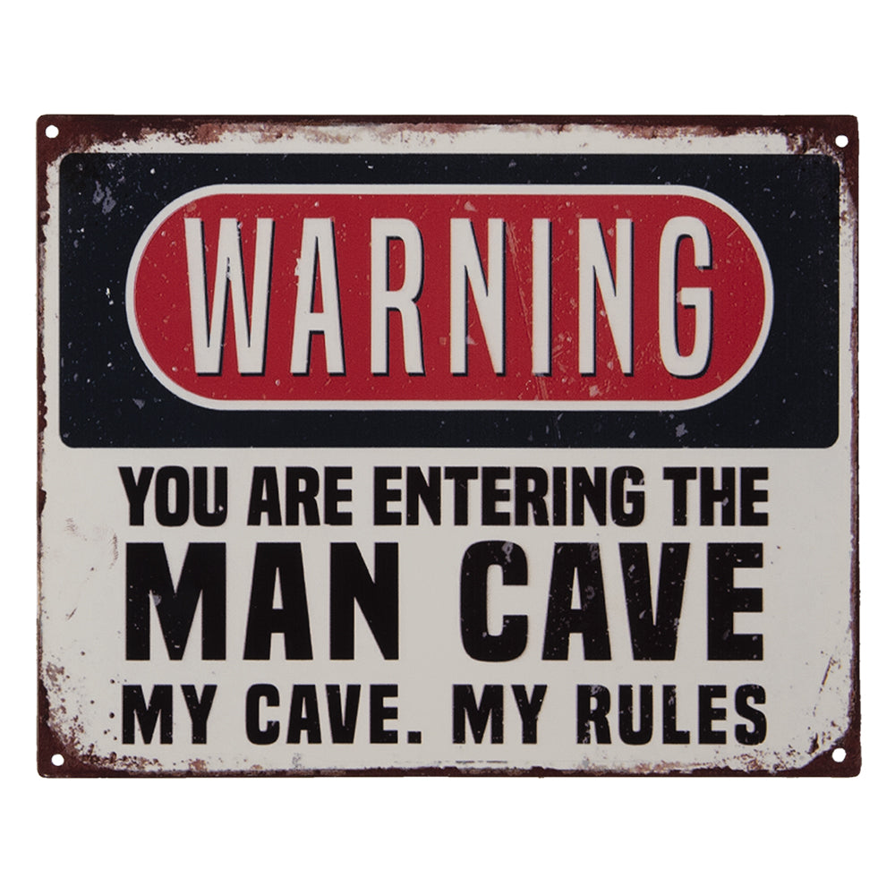 Clayre & Eef Tekstbord 25x20 cm Rood Zwart Ijzer Warning Wandbord