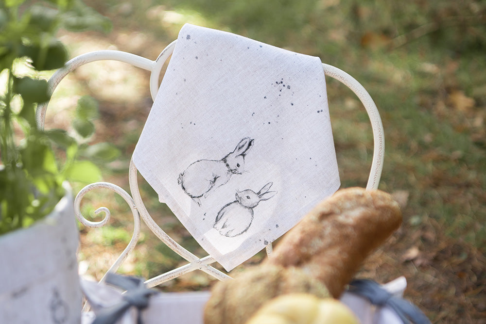 Maak kennis met de betoverende textielserie met lieflijke konijntjes op een linnen look ondergrond, verfraaid met grijze kleuraccenten. Deze collectie straalt een speelse charme uit door het unieke patronen en schattige illustraties, dat elke ruimte een vrolijke touch geeft. Denk aan tafellopers, broodmandjes en keukendoeken. Laat je omarmen door de schattige konijntjes en het creatieve design, en geef je interieur een speelse en liefdevolle uitstraling! Theedoek