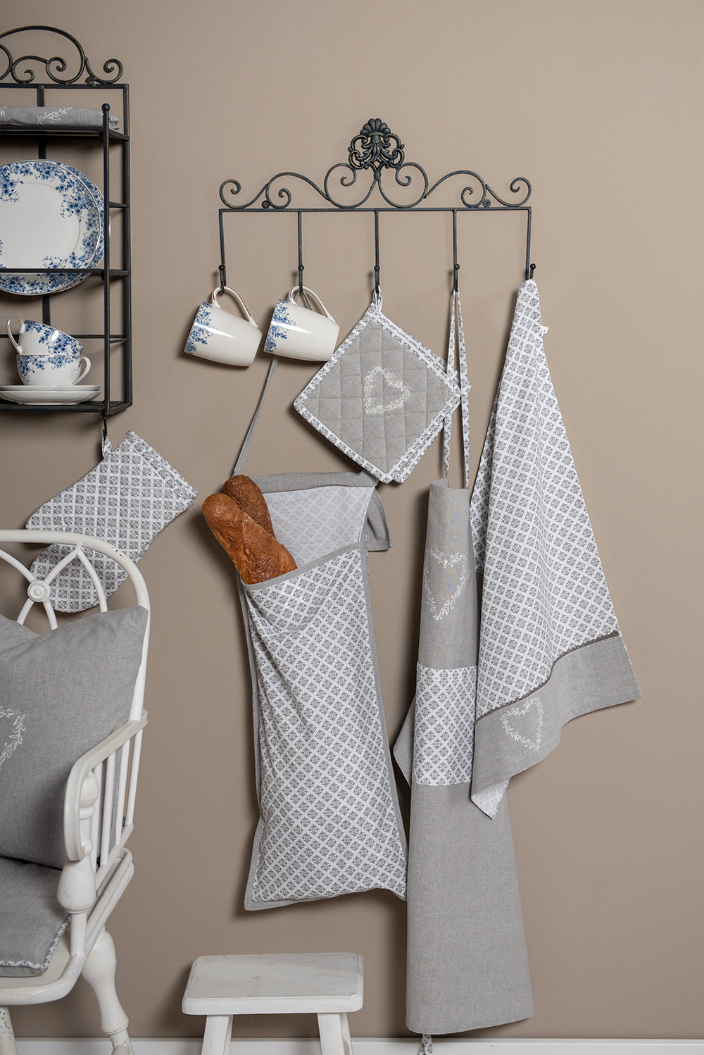 Clayre & Eef Theedoek 50x70 cm Grijs Wit Katoen Harten Ruiten