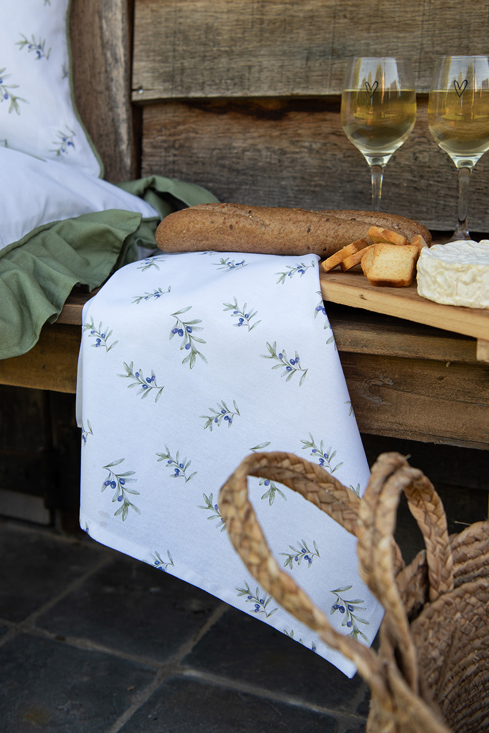 Clayre & Eef Theedoek 50x70 cm Wit Katoen Olijven