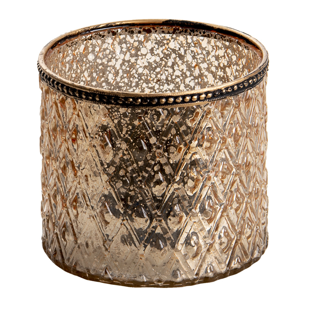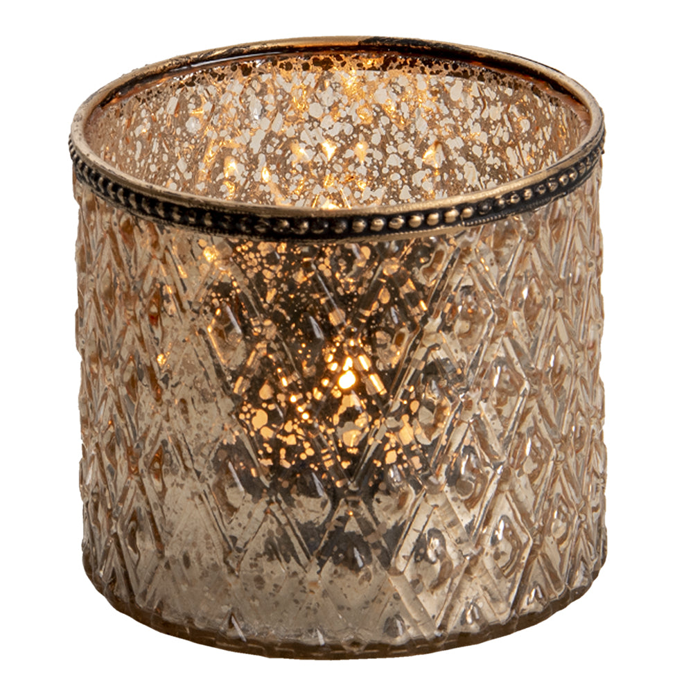 Clayre & Eef Theelichthouder Ø 11x10 cm Goudkleurig Glas Metaal Rond