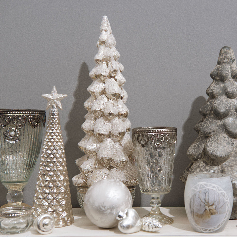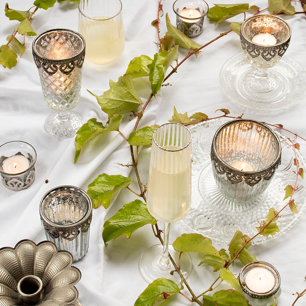 Clayre & Eef Theelichthouder Ø 8x16 cm Zilverkleurig Glas Metaal