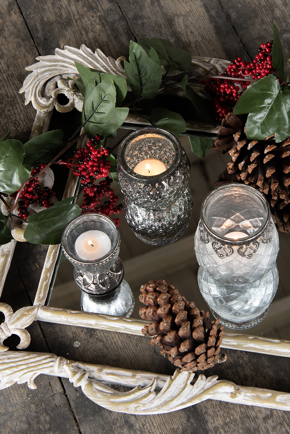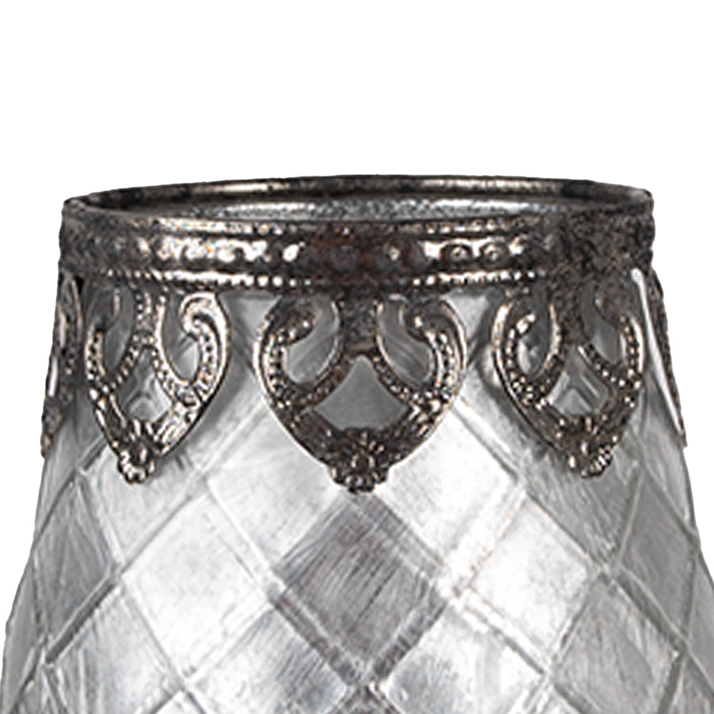 Clayre & Eef Theelichthouder Ø 9x11 cm Zilverkleurig Glas