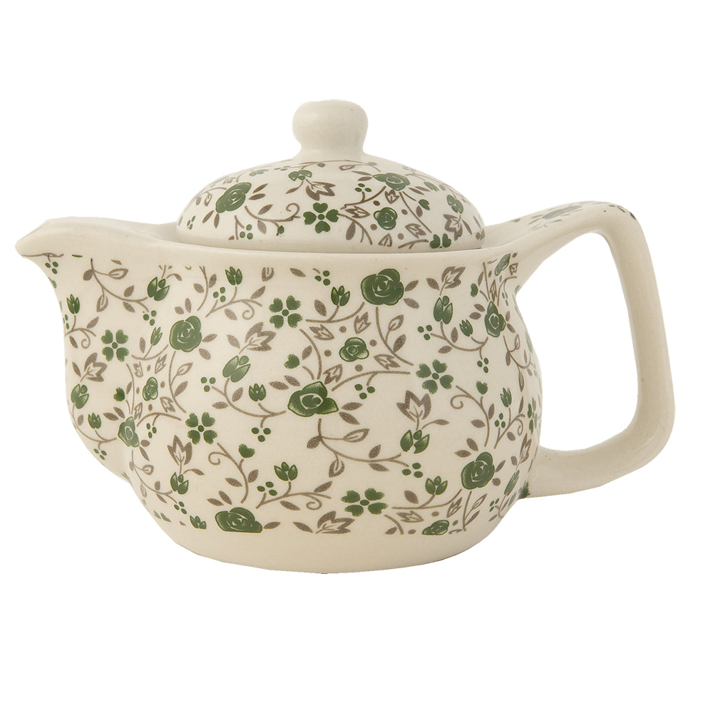 Clayre & Eef Theepot met Filter 400 ml Groen Keramiek Rond Bloemen