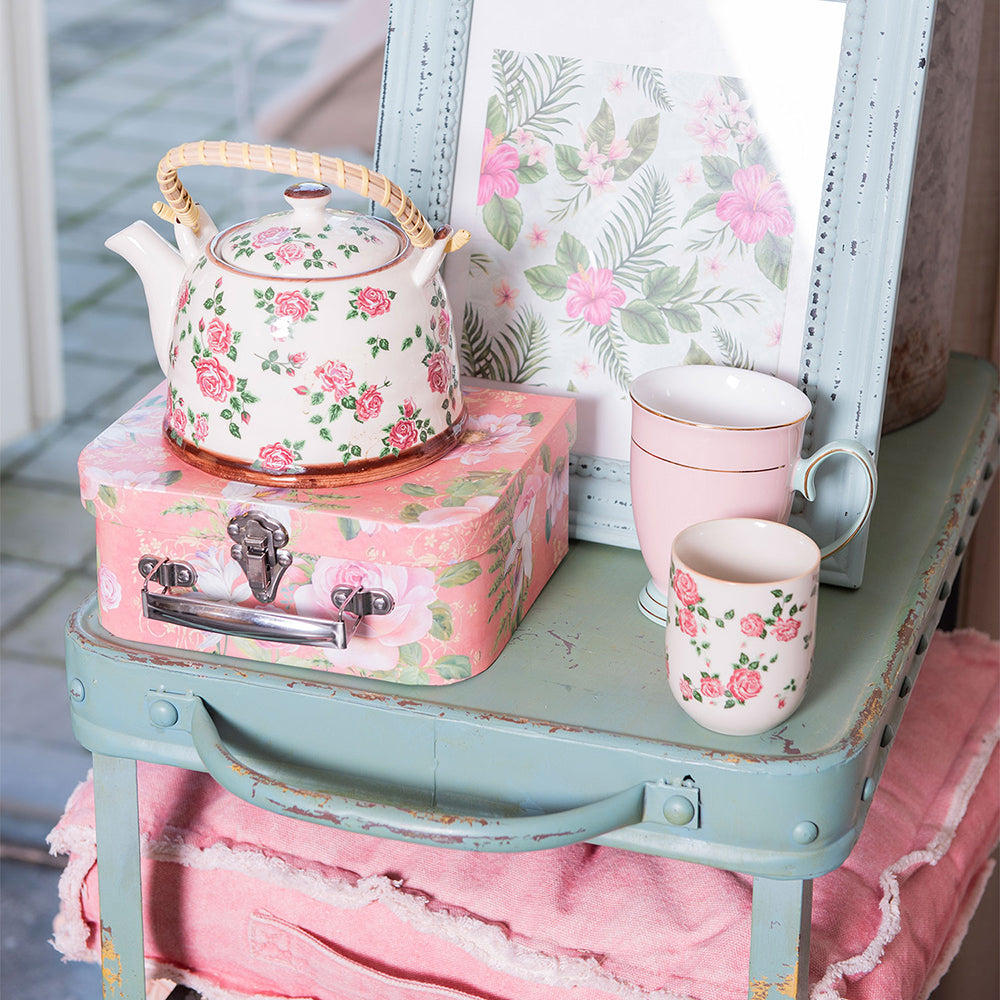 Clayre & Eef Theepot met Filter 700 ml Beige Roze Keramiek Bloemen