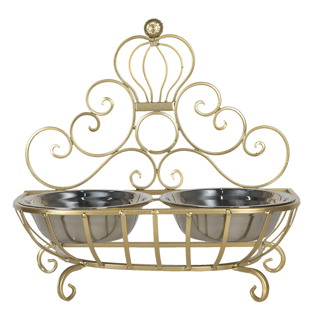 Clayre & Eef Voerbak Hond 2x500 ml Goudkleurig Ijzer Kroon Voerbak
