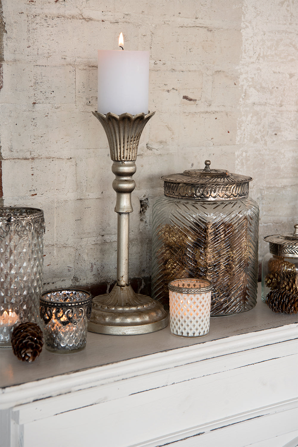 Clayre & Eef Voorraadpot  Ø 15x21 cm Glas Metaal Voorraadbus Bewaarpot