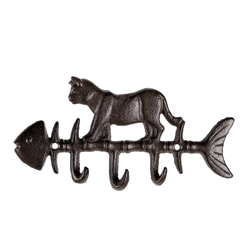 Clayre & Eef Wandkapstok 3 haken Kat 20x2x10 cm Bruin Ijzer