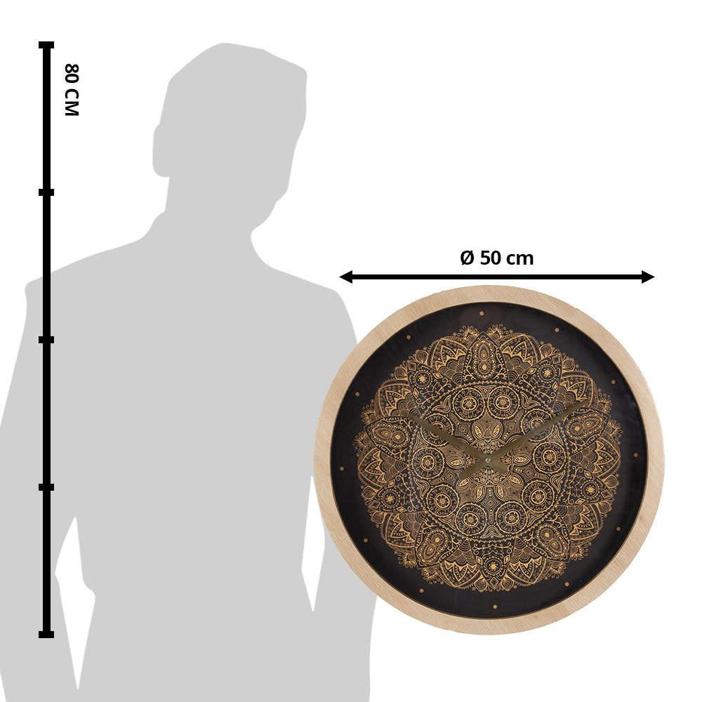 Clayre & Eef Wandklok  Ø 50 cm Zwart Goudkleurig Hout Glas Muurklok