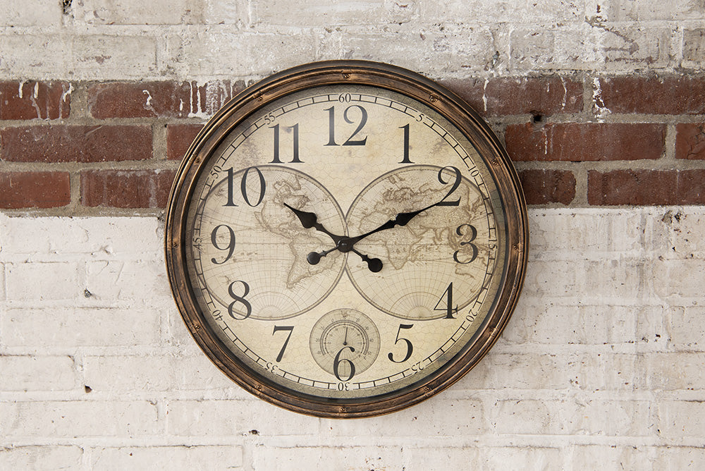 Clayre & Eef Wandklok Ø 50x5 cm Bruin Beige Kunststof Wereldkaart