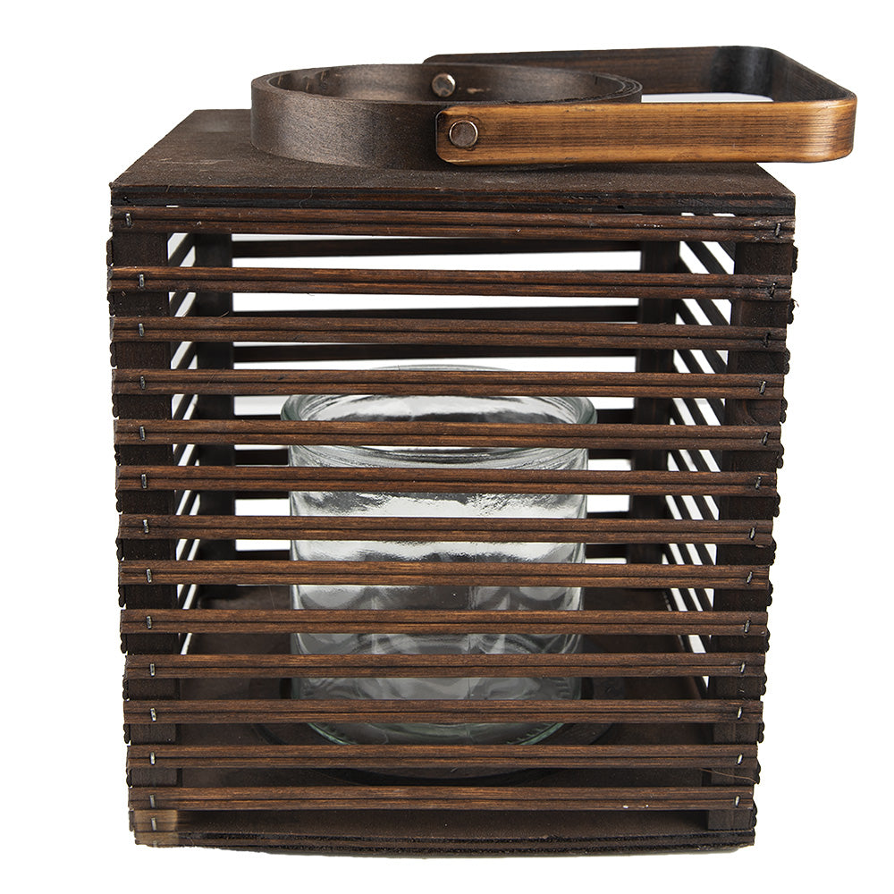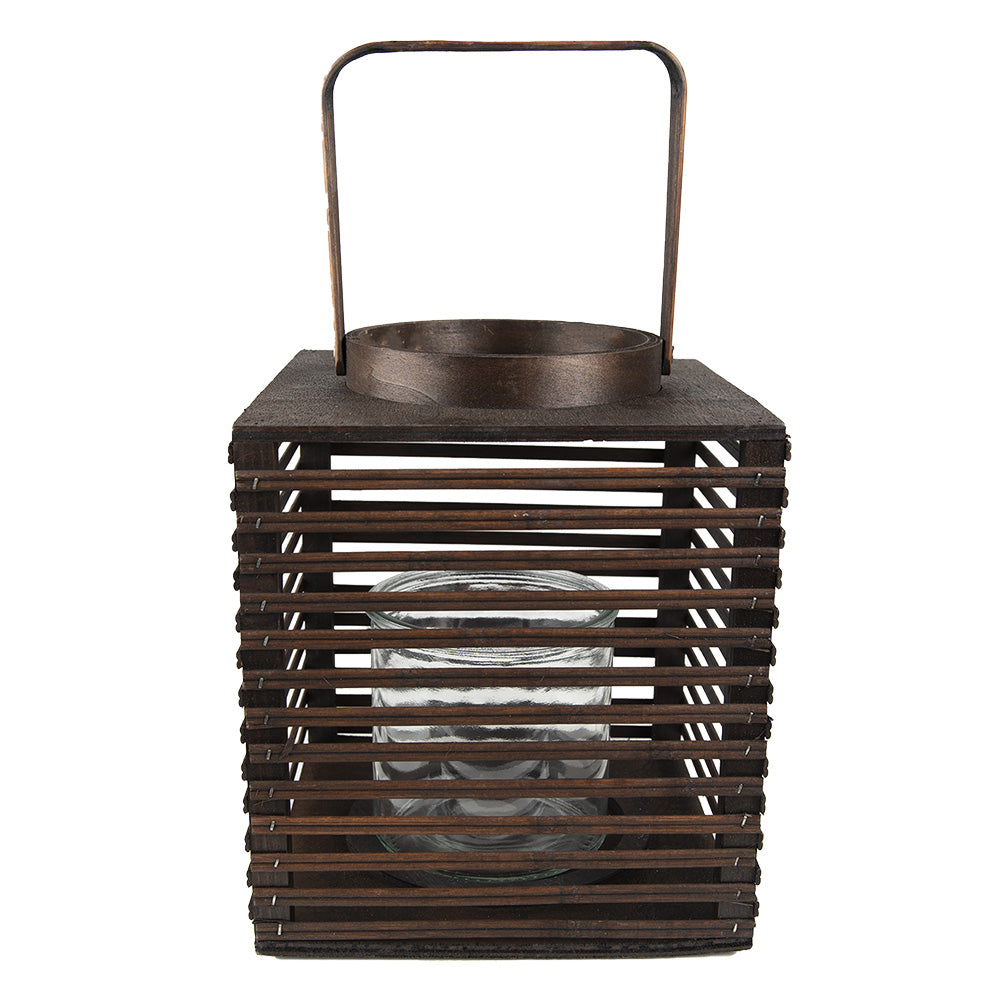 Clayre & Eef Windlicht 21x21x25 cm Bruin Bamboe Kaarsenhouder