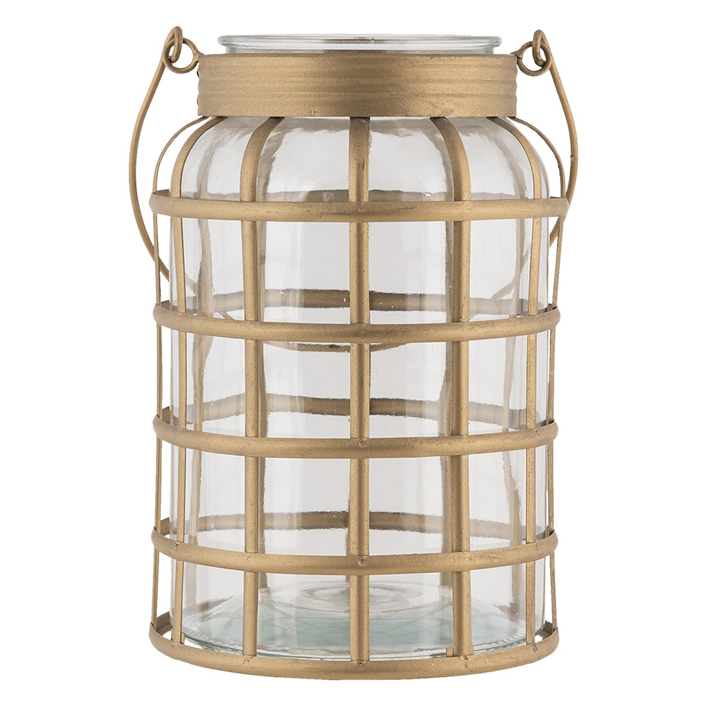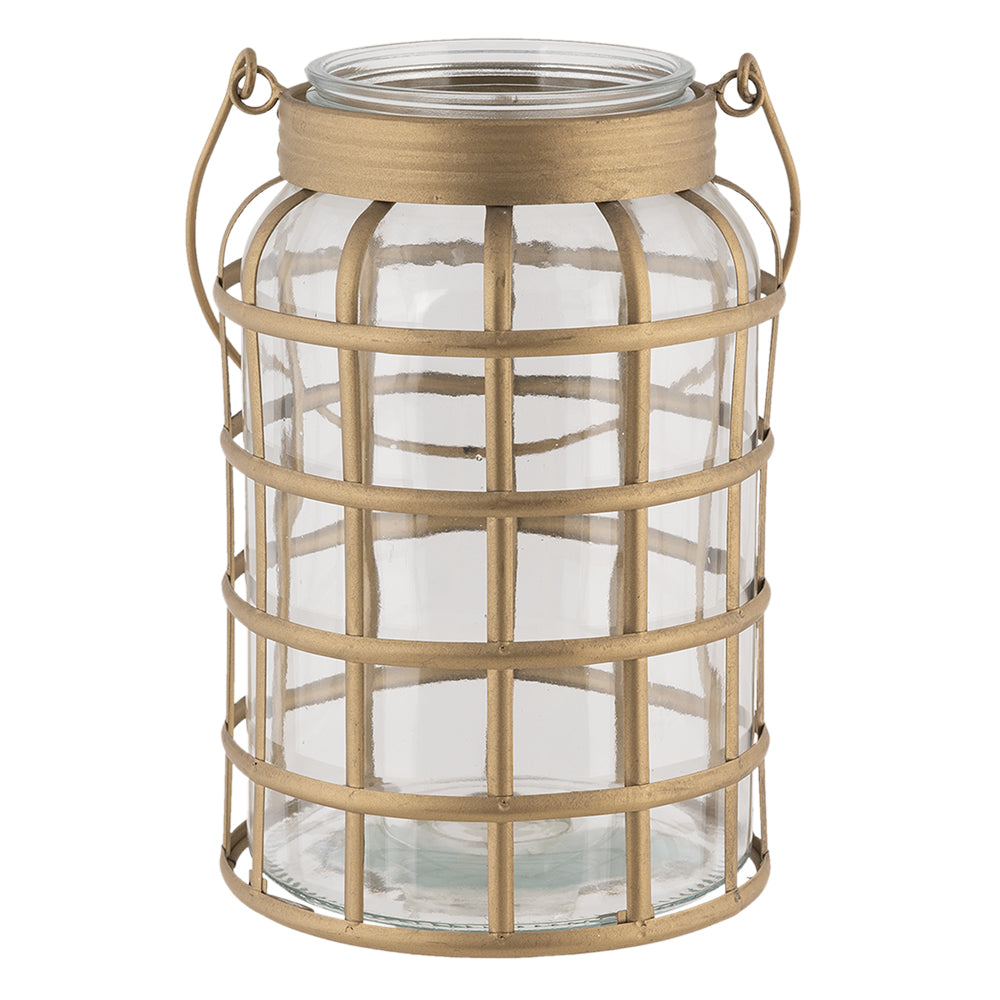 Clayre & Eef Windlicht Ø 17x26|41 cm Koperkleurig Ijzer Glas Rond