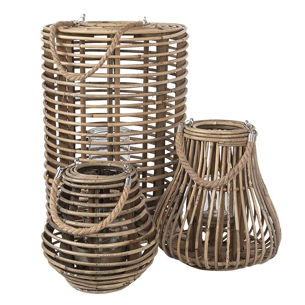 Clayre & Eef Windlicht Ø 27x30 cm Beige Hout Glas Rond Kaarsenhouder