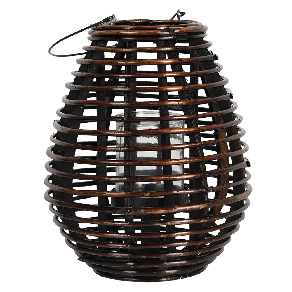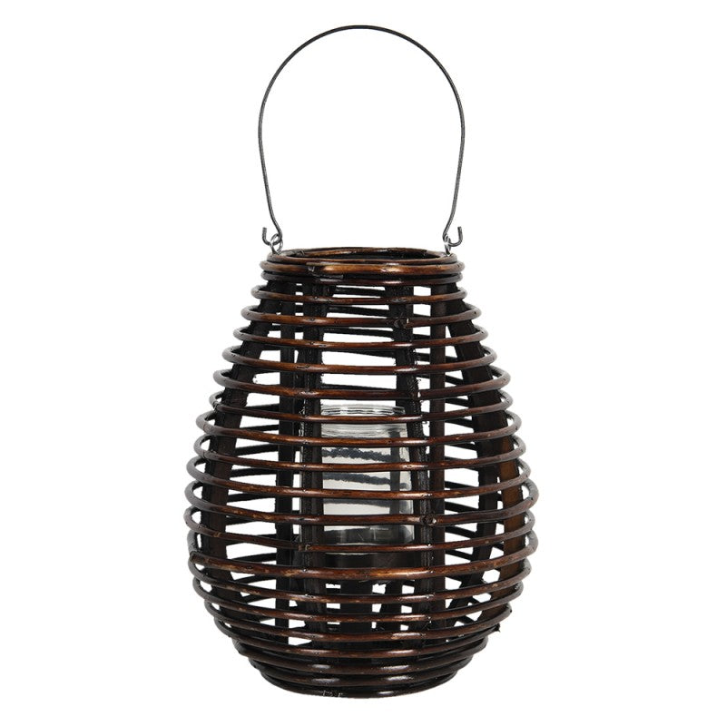 Clayre & Eef Windlicht Ø 29*35 cm Bruin Hout Glas Rond Kaarsenhouder