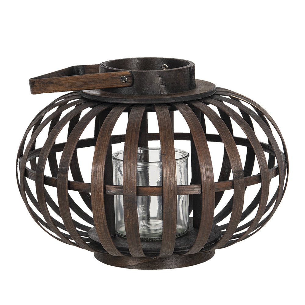 Clayre & Eef Windlicht Ø 34x23 cm Bruin Hout Glas Rond Kaarsenhouder