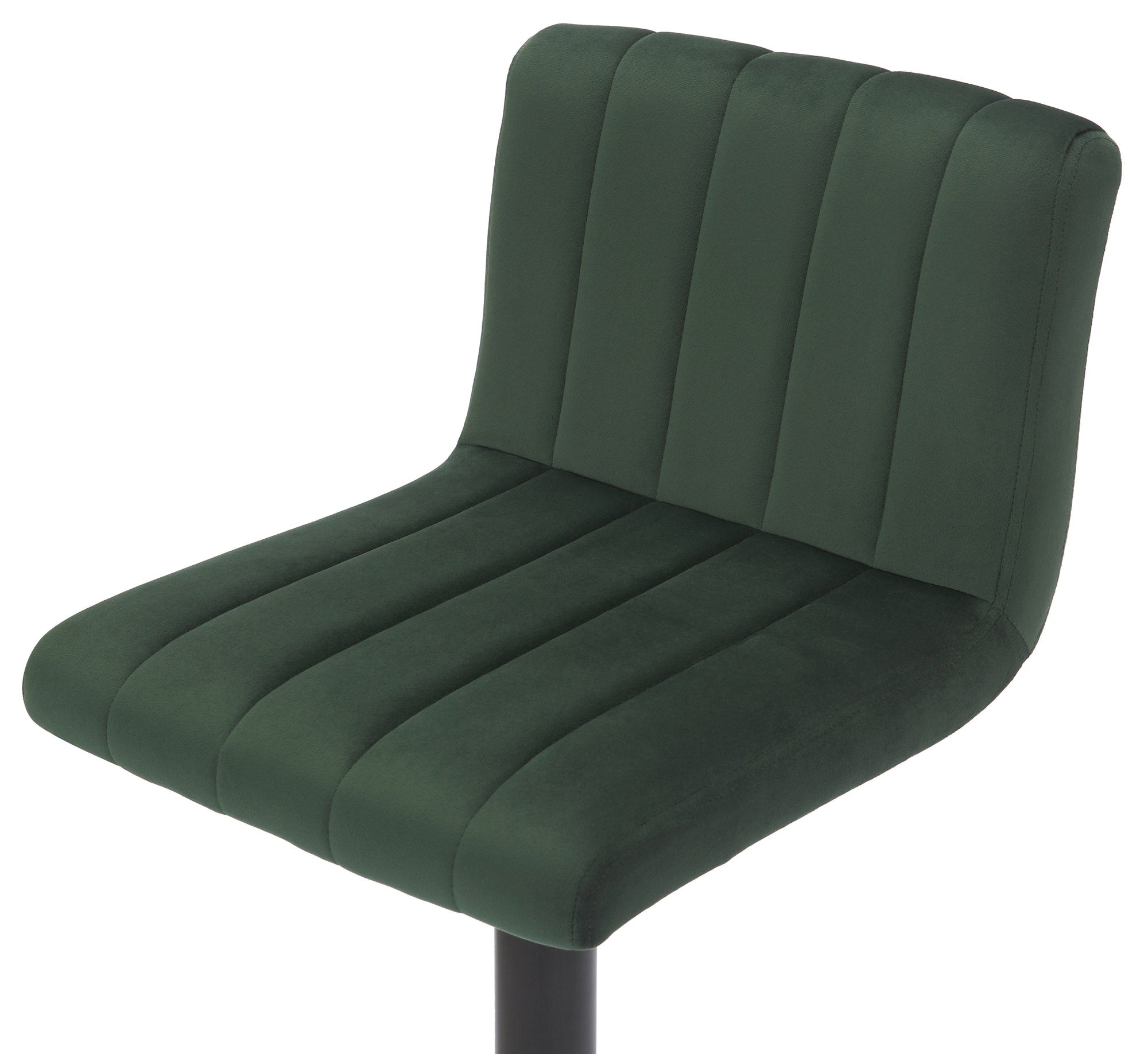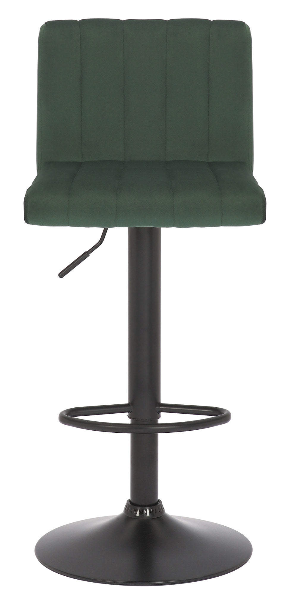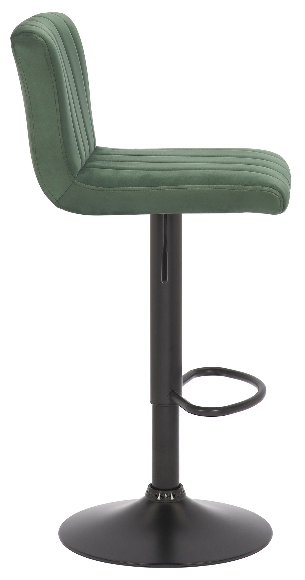 Deze barkruk geeft elke ruimte een exclusieve uitstraling en overtuigt niet alleen door zijn uitstekende zit eigenschappen, maar ook door zijn moderne design. De zitting is bekleed met een gemakkelijk te onderhouden fluwelen hoes. Met behulp van de gasveer kan dit model traploos op de gewenste hoogte worden ingesteld, zodat het ideaal geschikt is voor elke aanrechthoogte. De voetsteun, die voor een zeer goed zitcomfort zorgt, kan synchroon met de hoogte van de zitting worden versteld. De zitting kan samen met de voetsteun 360° gedraaid worden. De trompetvoet van zwart metaal heeft vloerbeschermers aan de onderkant om te voorkomen dat er krassen op oppervlakken komen.