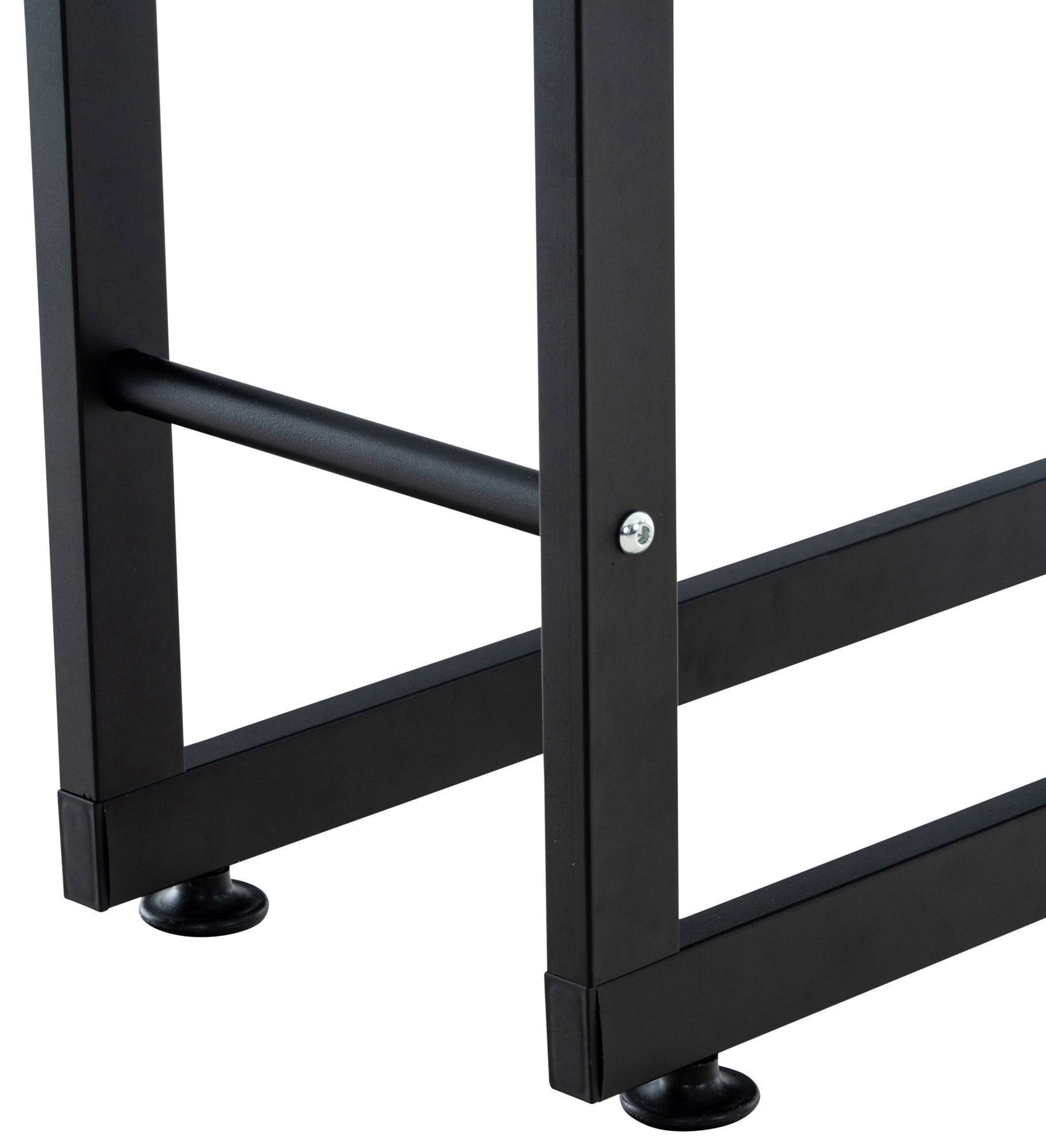 Bijzonder praktisch: Om te voorkomen dat het hout aan de zijkanten naar buiten valt, zijn er aan elke kant 3 dwarsbalken. Ze zorgen ook voor extra stabiliteit van het brandhoutrek. Daarnaast is de plank voorzien van 4 vloerbeschermers, die in hoogte verstelbaar zijn om oneffenheden te compenseren.