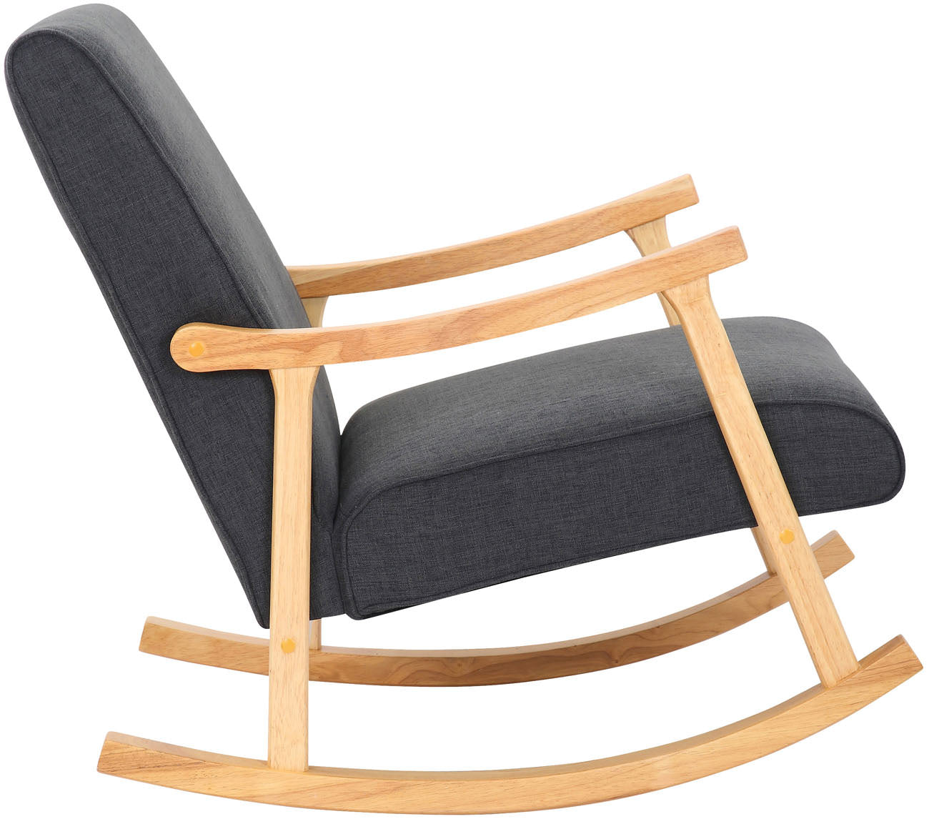 De Morelia schommelstoel is de ideale keuze als het gaat om hedendaags zitcomfort! De aangename onderhoudsvriendelijke stoffen bekleding maken van deze stoel een absoluut gezellige plek. Door het royale zitvlak en de aangenaam hoge armleuningen zijn ook langere zitfasen niet belastend. Hij staat op een stabiel rubberhouten frame en twee zware houten lopers.