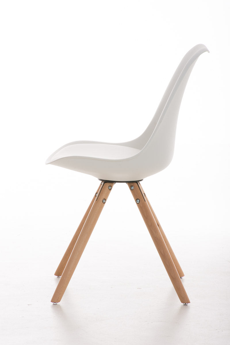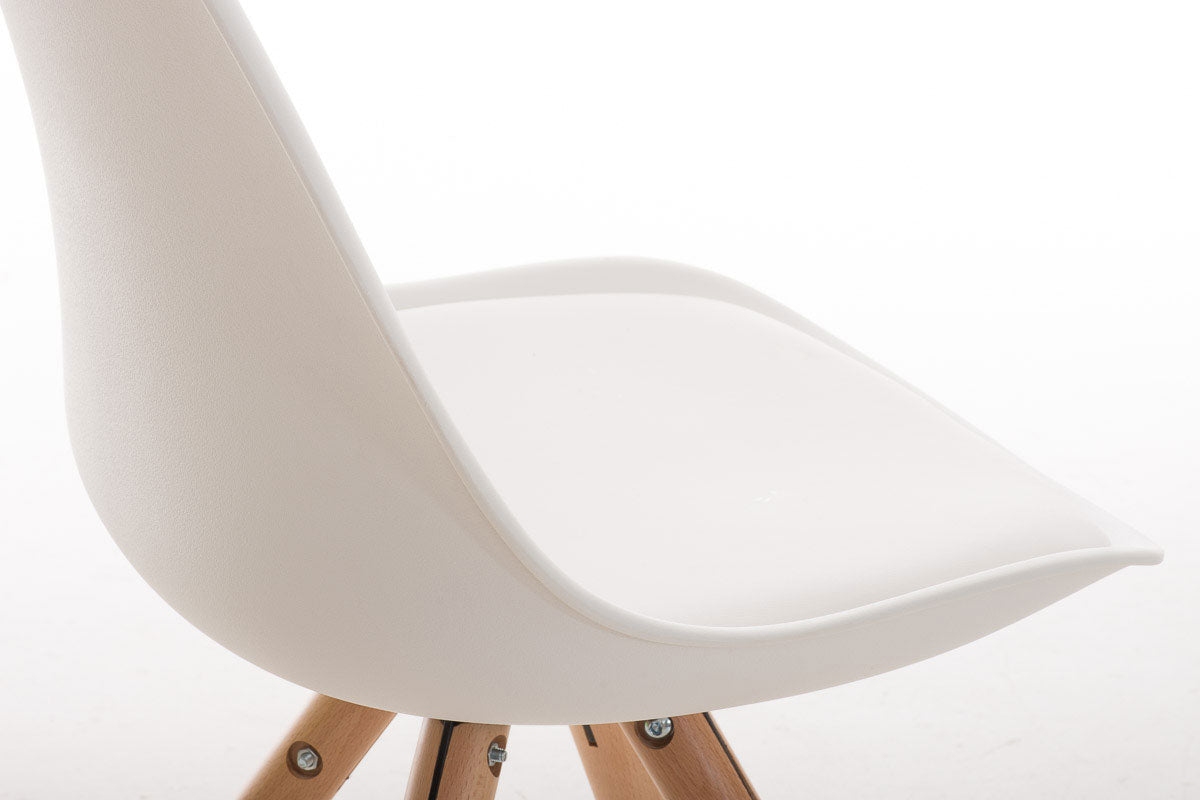 Het zitje is gemaakt van stevig plastic. De aangename en comfortabele bekleding met kunstlederen overtrek zorgt voor een comfortabele zit, zelfs over een langere periode. Op de 4-voet frame van hout is deze bezoekersstoel prima geschikt voor elke gelegenheid. Het model is precies goed als je modern wilt opzetten.