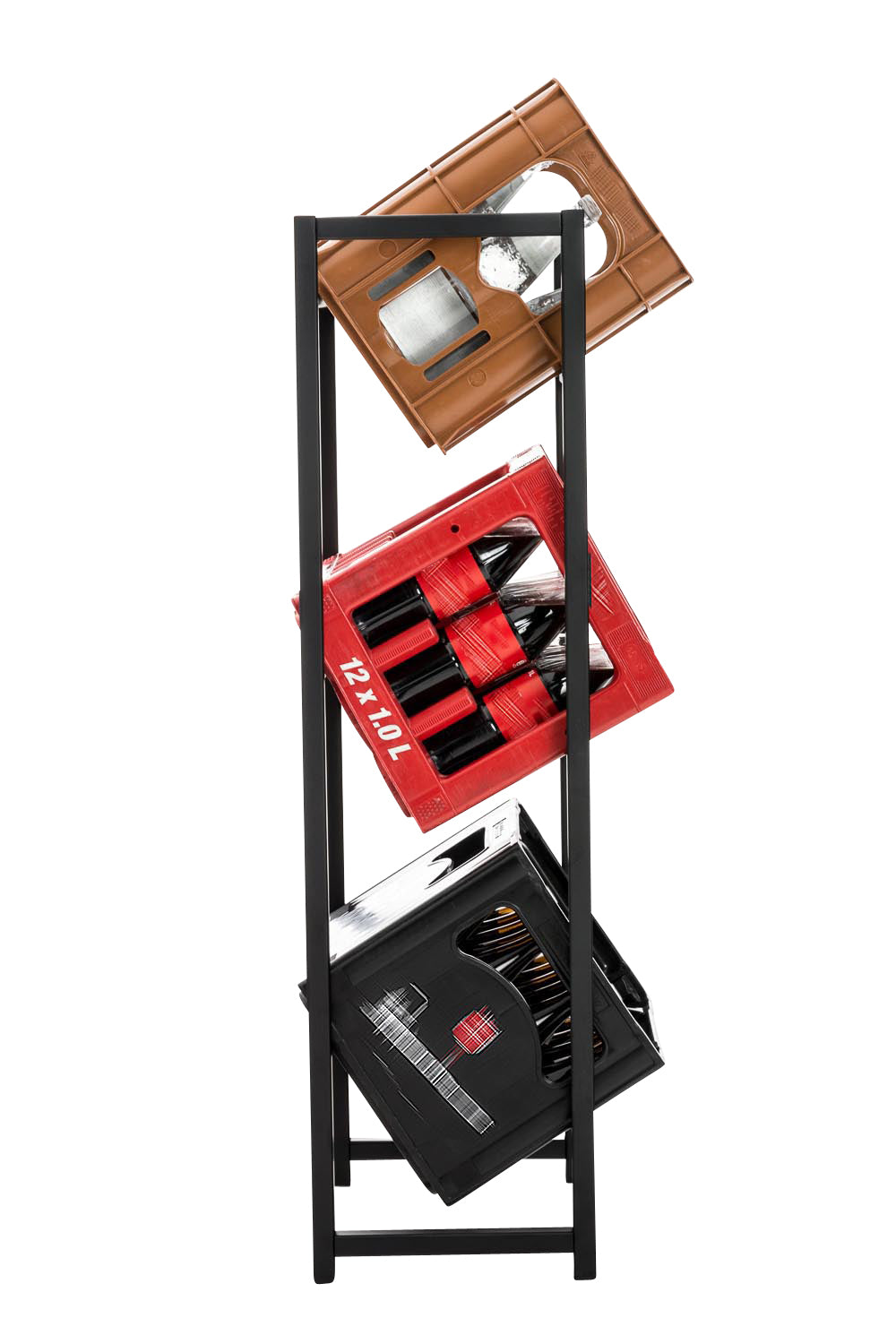 Dit krattenrek mag gezien worden. Het is niet enkel praktisch, maar ook echte een blikvanger door het roestvrije staal. Door de schuine positie van de drankkratten kunnen de flessen gemakkelijk uitgenomen worden. Ook andere kratten kunnen in het rek opgeborgen worden, bv. een houtkrat.