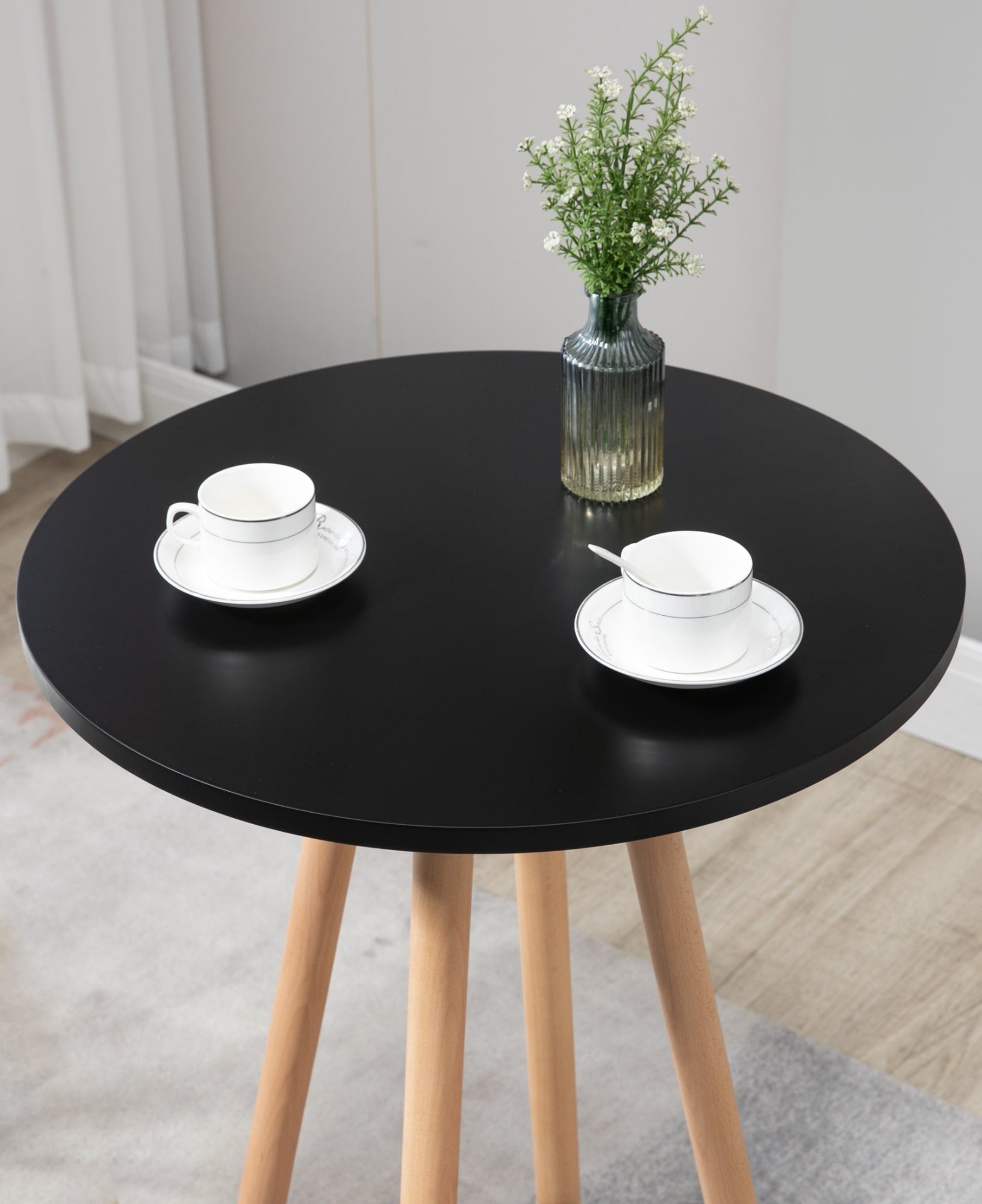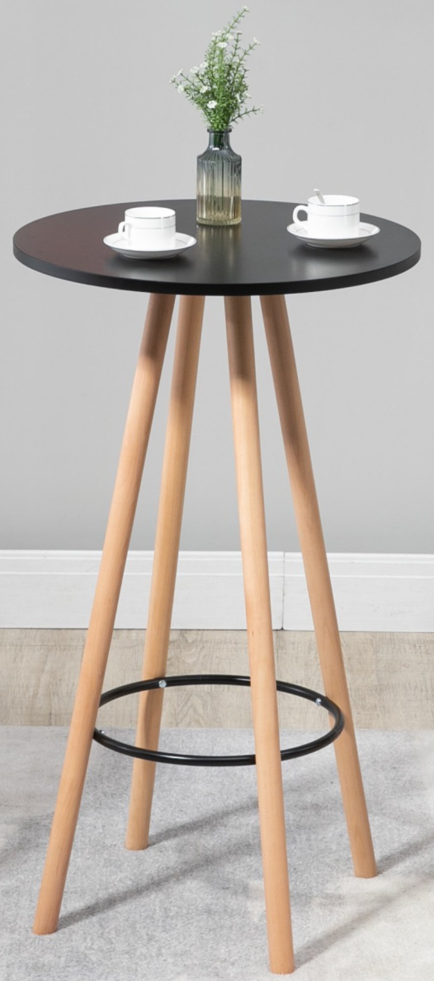 Deze ronde statafel inspireert met zijn Scandinavische ontwerp en zijn uitlopende, conische poten. Het is gemaakt van beukenhout en de poten zijn voorzien van vloerbeschermers, zodat het stabiel en veilig kan worden gebruikt op elke ondergrond. De bartafel is bij uitstek geschikt voor zowel particulier als zakelijk gebruik en wordt overal een echte blikvanger. Met zijn stabiele basis biedt hij ook een comfortabele voetsteun. Het tafelblad is gemaakt van MDF en is verkrijgbaar in zwart en wit.