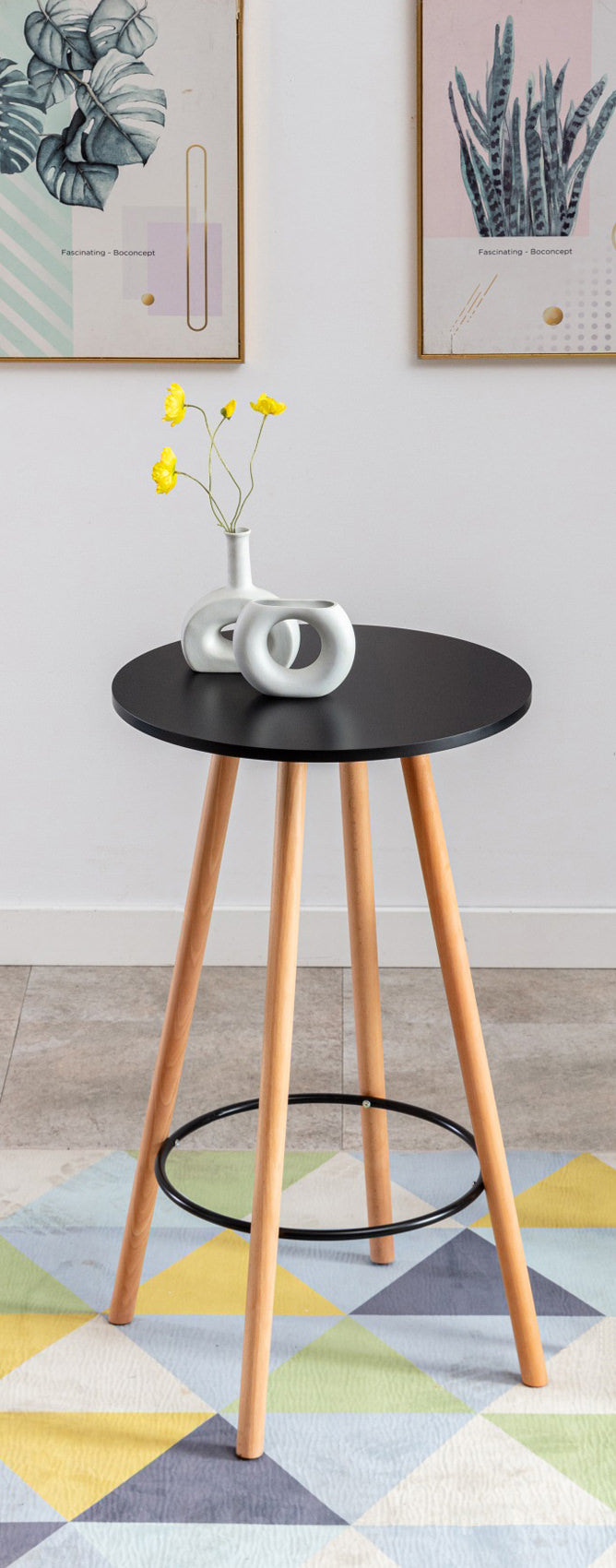 Met zijn uitlopende, conische poten creëert de ronde bartafel een vrolijke woonsfeer. Het ronde tafelblad en het welgevormde frame zijn gemaakt van beukenhout, en de poten zijn bovendien voorzien van vloerbeschermers. Zo kan deze tafel zonder aarzelen stabiel worden gebruikt op elke ondergrond. Dankzij het eenvoudige Scandinavische ontwerp past hij harmonieus in elke omgeving. Deze statafel is uitermate geschikt voor zowel privé als zakelijk gebruik en zal overal een absolute blikvanger zijn. Het eenvoudige onderstel biedt naast een stevige stand ook een praktische voetsteun.