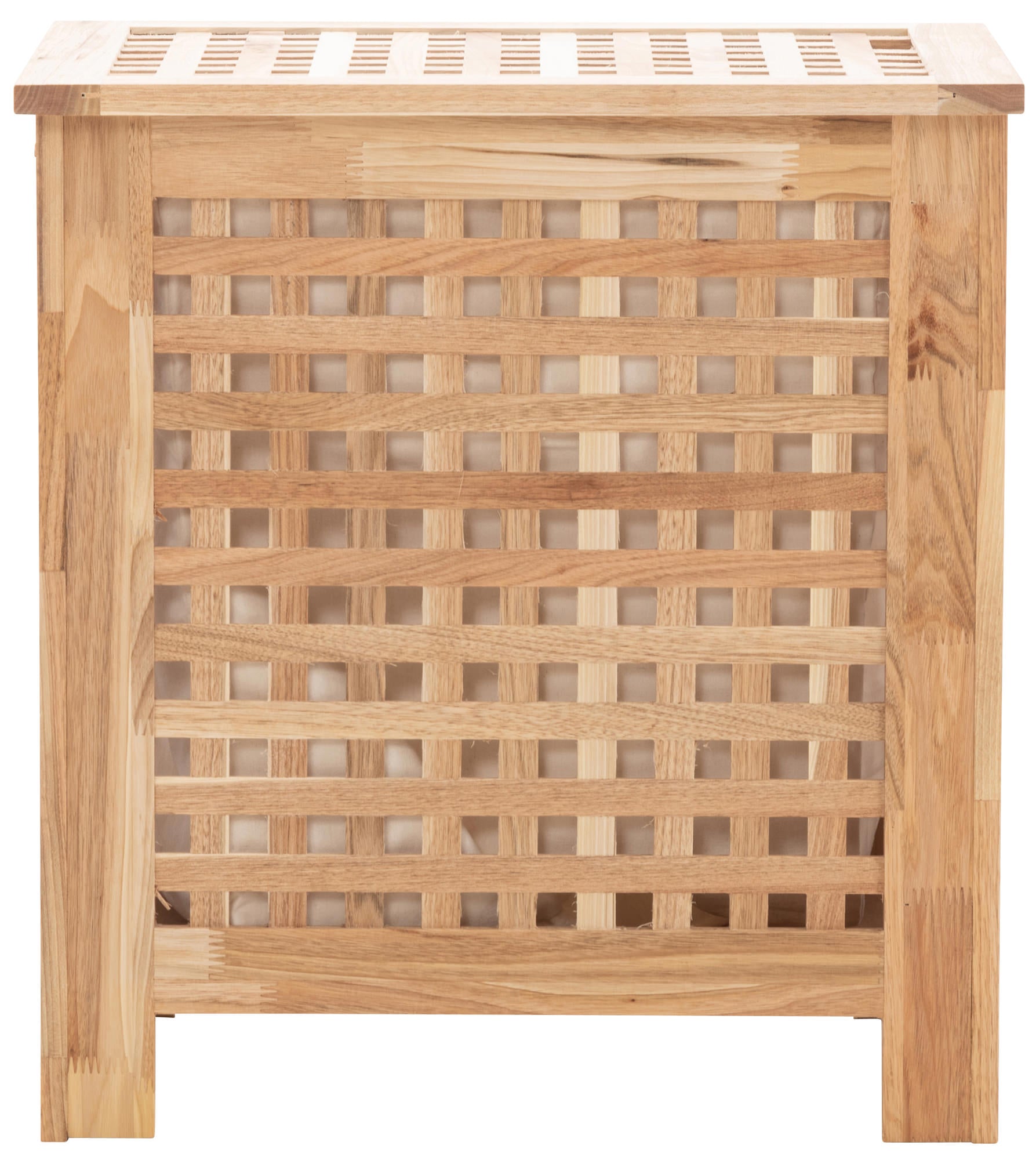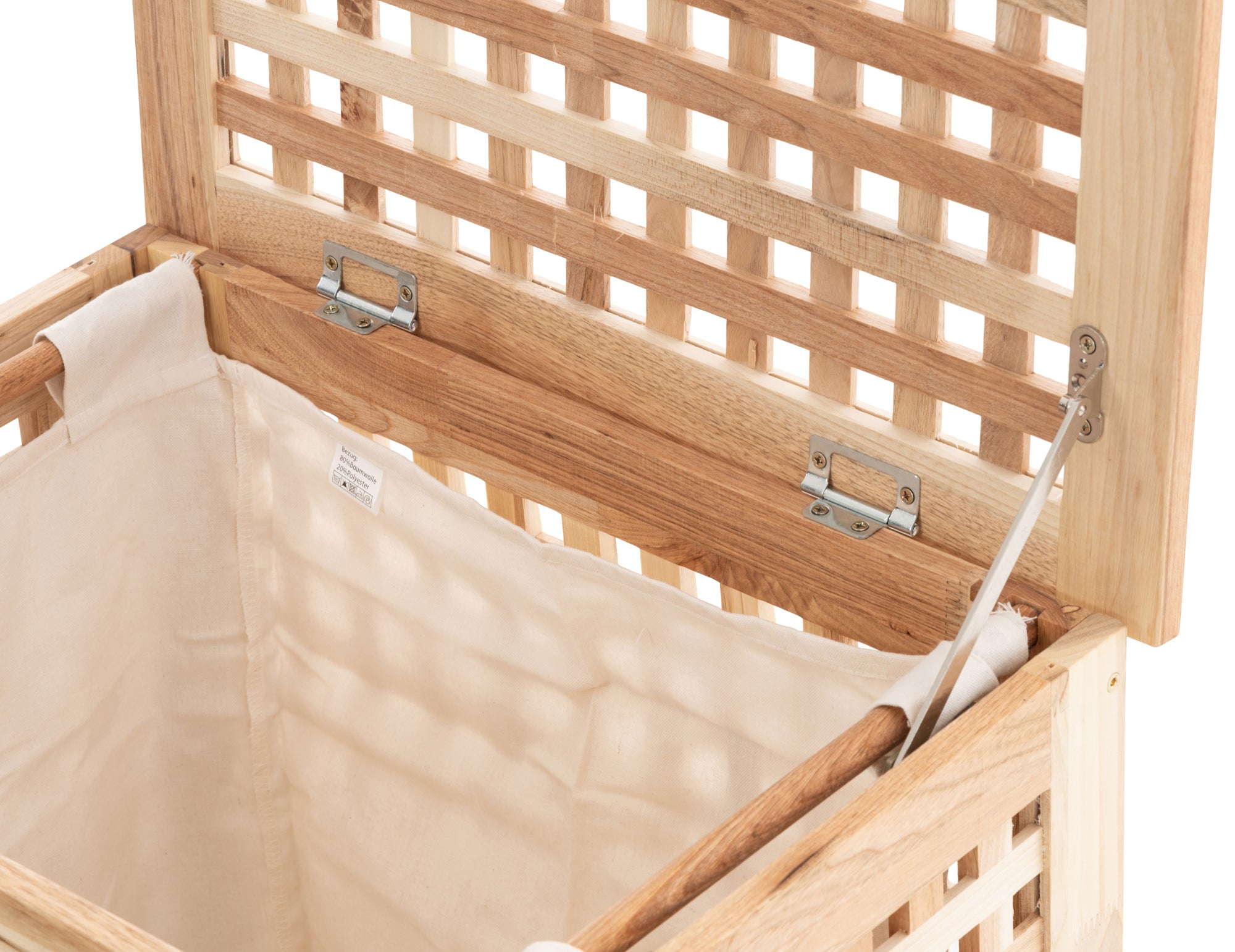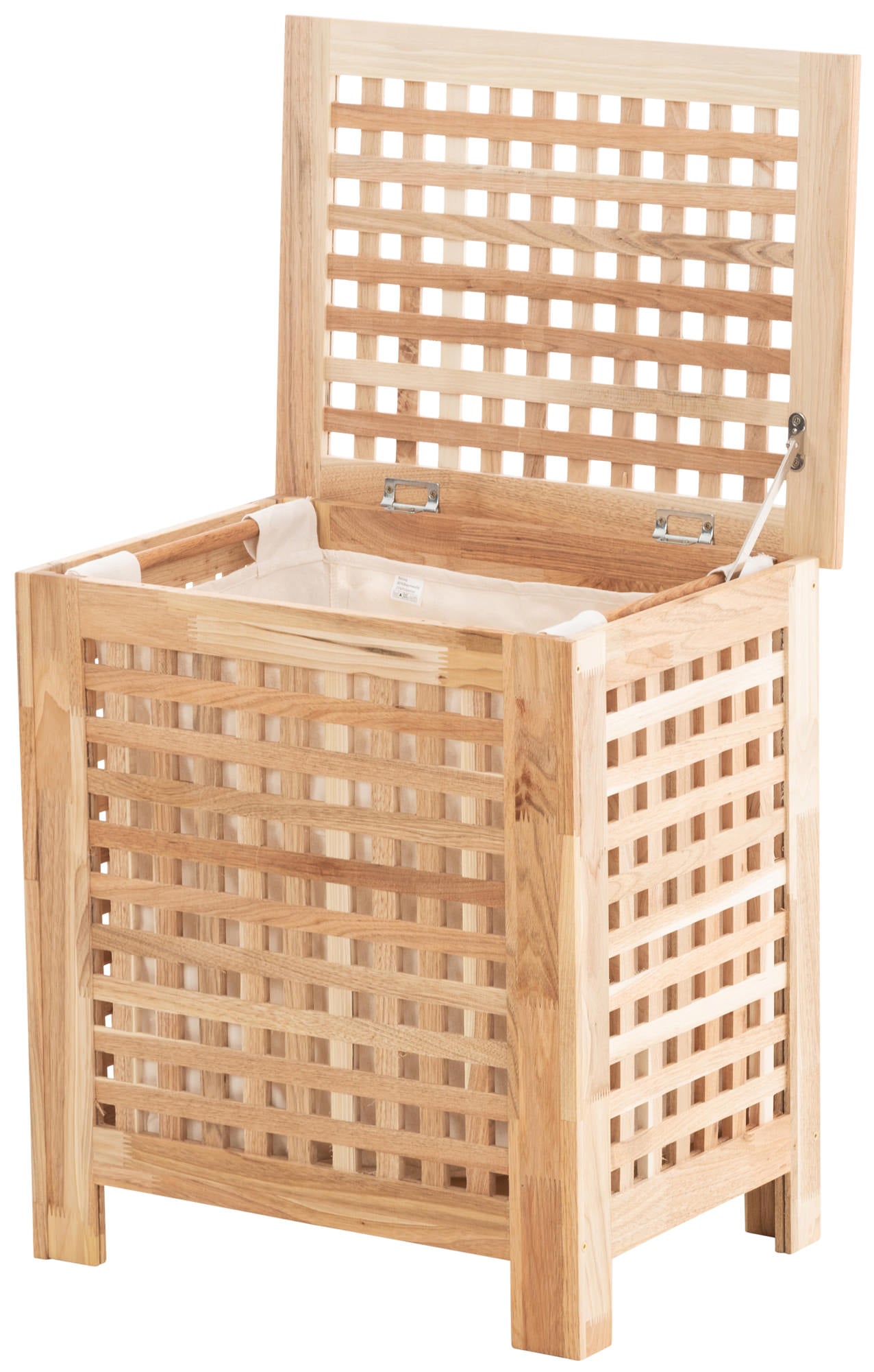 De prachtige wasmand Tarras wordt gedefinieerd door zijn eenvoudige rasterconstructie van geolied walnotenhout en brengt natuurlijkheid in uw interieur. Voor eenvoudig wasgoedtransport kunt u de waszak eenvoudig verwijderen. Op het deksel is een mechanisme gemonteerd voor eenvoudig openen en sluiten en in gesloten toestand kan de doos dienen als een ruime opbergruimte.
