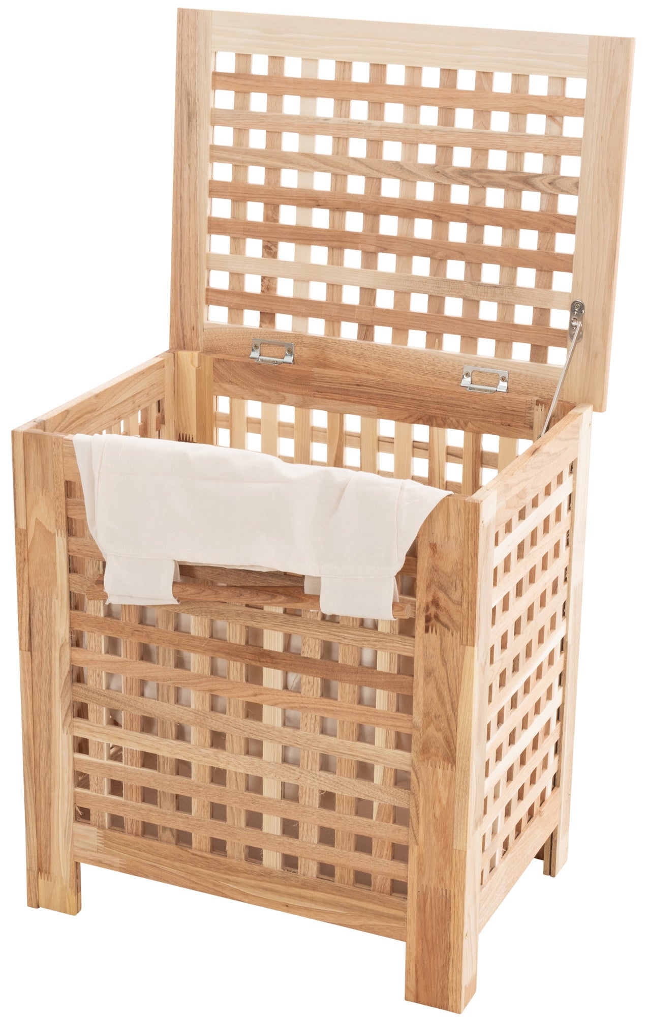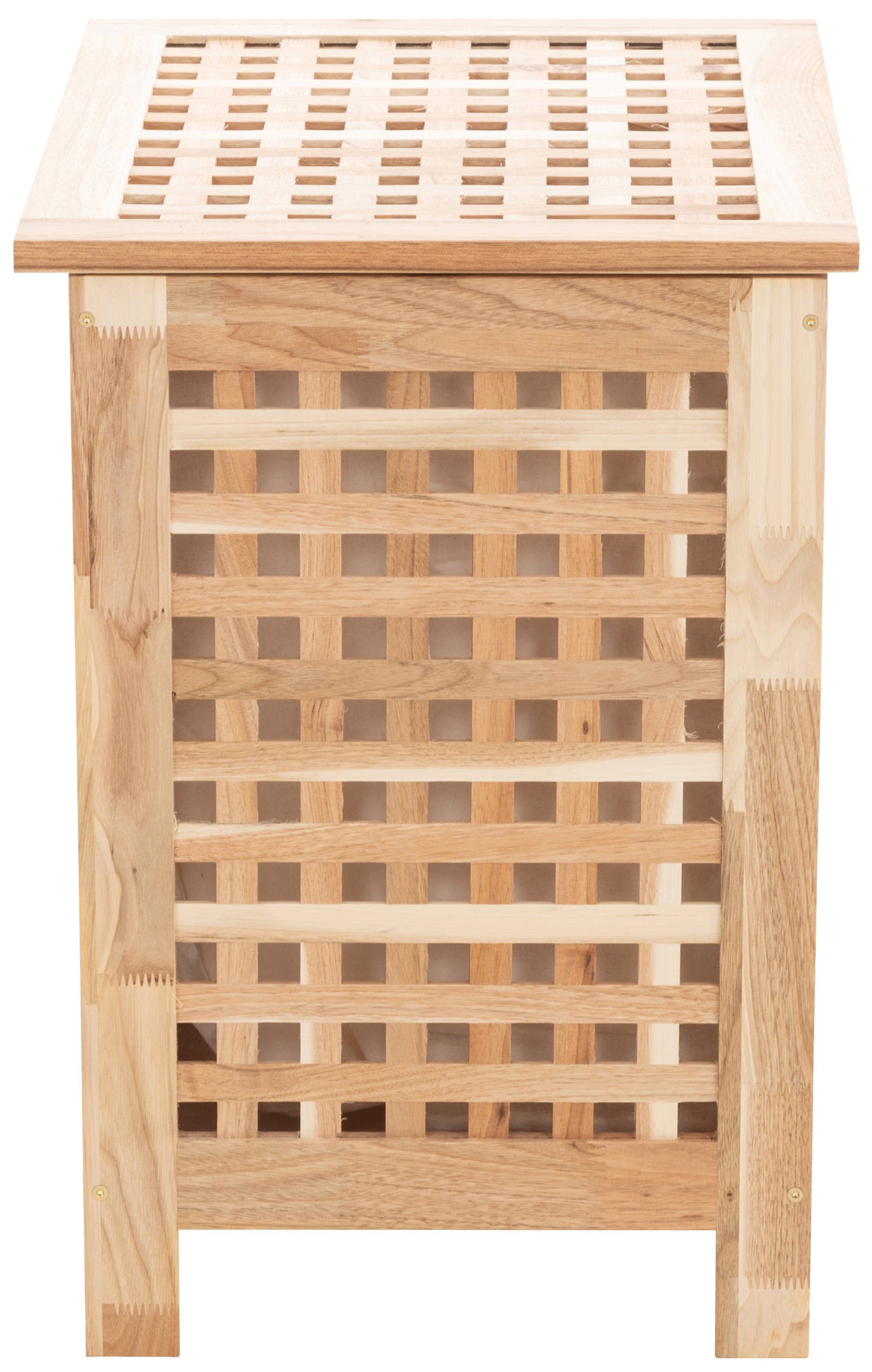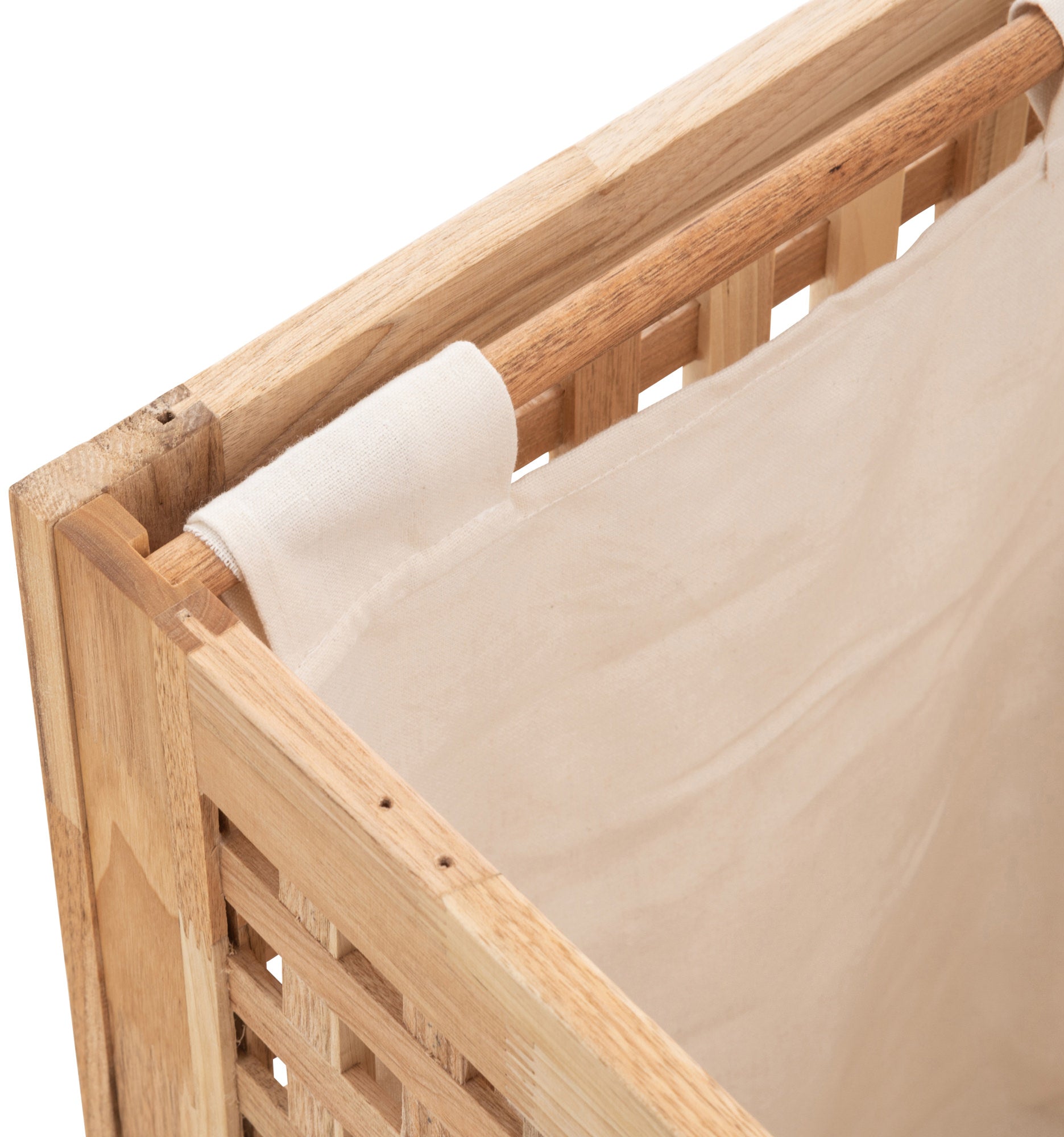 De prachtige wasmand Tarras wordt gedefinieerd door zijn eenvoudige rasterconstructie van geolied walnotenhout en brengt natuurlijkheid in uw interieur. Voor eenvoudig wasgoedtransport kunt u de waszak eenvoudig verwijderen. Op het deksel is een mechanisme gemonteerd voor eenvoudig openen en sluiten en in gesloten toestand kan de doos dienen als een ruime opbergruimte.