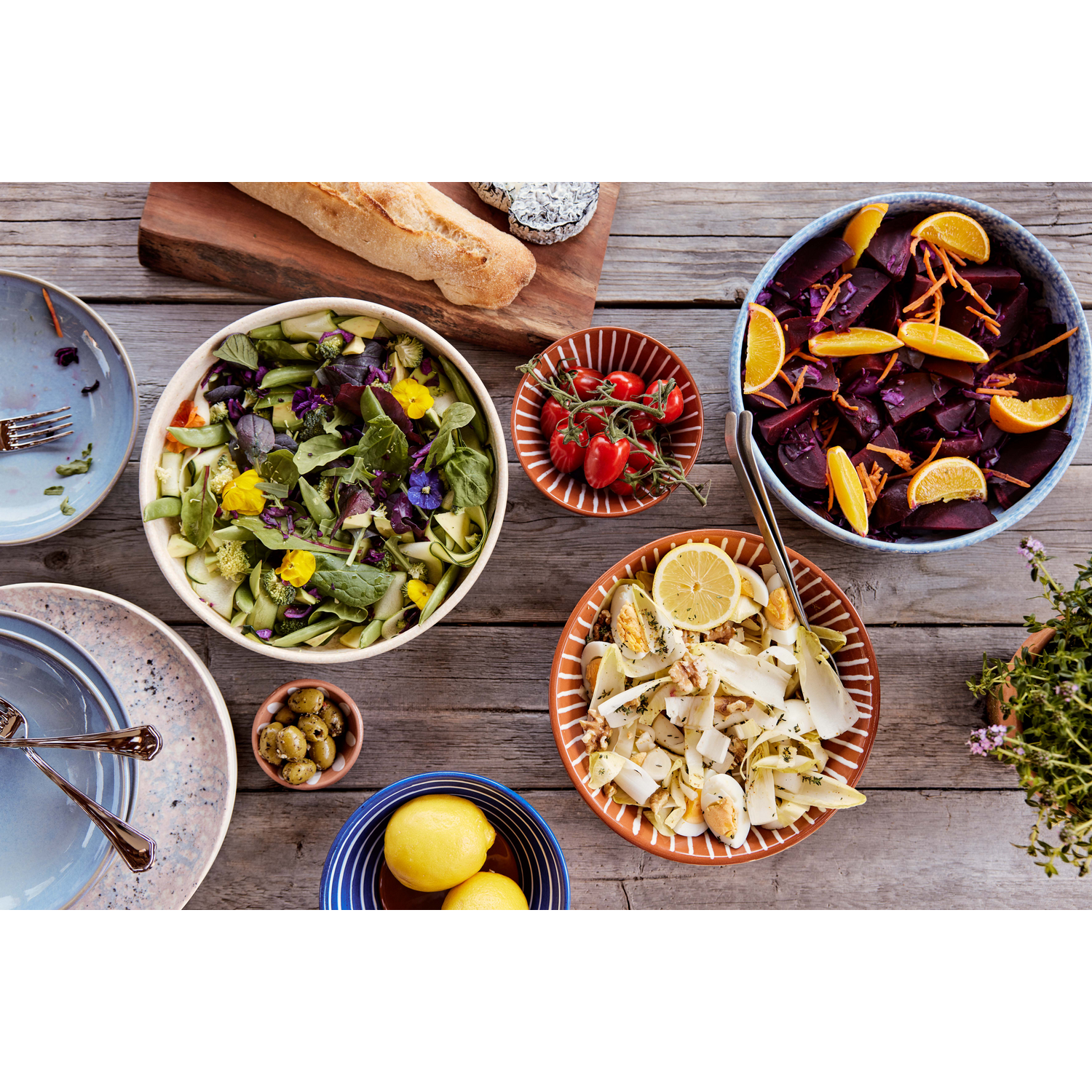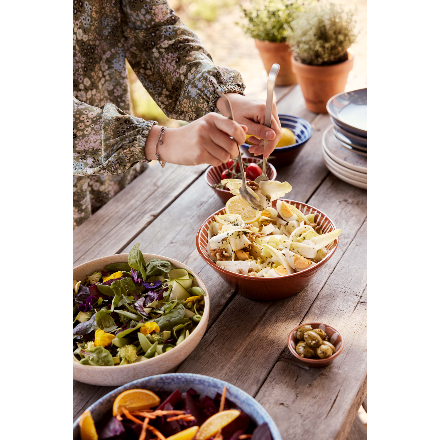 "Living the meditteranean" Gebaseerd op de "kleuren van het zuiden"! Mezquita is een uitbundige serie met sprankelende kleuren! Gezellig borrelen met veel vrienden, waarbij heerlijke hapjes natuurlijk niet mogen ontbreken! Mezquita is perfect voor het serveren van diverse lekkernijen! Combineer de volle, krachtige kleuren van de verschillende schalen, kommen en borden en geef je tafel een prachtige Mediterrane sfeer. Met een diameter van 23 cm is de opvallende Stripe pink schaal zeer geschikt voor het serveren van bijgerechten. De schaal heeft een roze bodem met een terracotta rand waarbij witte strepen de binnenzijde bekleden. De inhoudsmaat is 1.8 liter. En om het nog eenvoudiger te maken sluit je je gezellige dineravond met vrienden gemakkelijk af door de schaal in de vaatwasmachine te zetten, ideaal! Belangrijkste kenmerken: · Product: 1 schaal · Diameter: 23 cm · Inhoudsmaat: 1.8 liter · Materiaal: Aardewerk · Kleur: Terracotta, wit, roze · Vaatwasmachinebestendig: Ja · Magnetronbestendig: Ja Mezquita Mezquita is vernoemd naar de voormalige moskee die vandaag de dag de kathedraal van Córdoba in Andalusië is. De serie Mezquita wordt geproduceerd in Andalusië, in het dorp Arjonilla in de streek Jaén. De prachtige aardewerk kleuren en strepen van Mezquita zijn geïnspireerd op de kleurrijke kathedraal. Alle schalen en kommen zijn handbeschilderd met een mooi decor en zijn uniek.